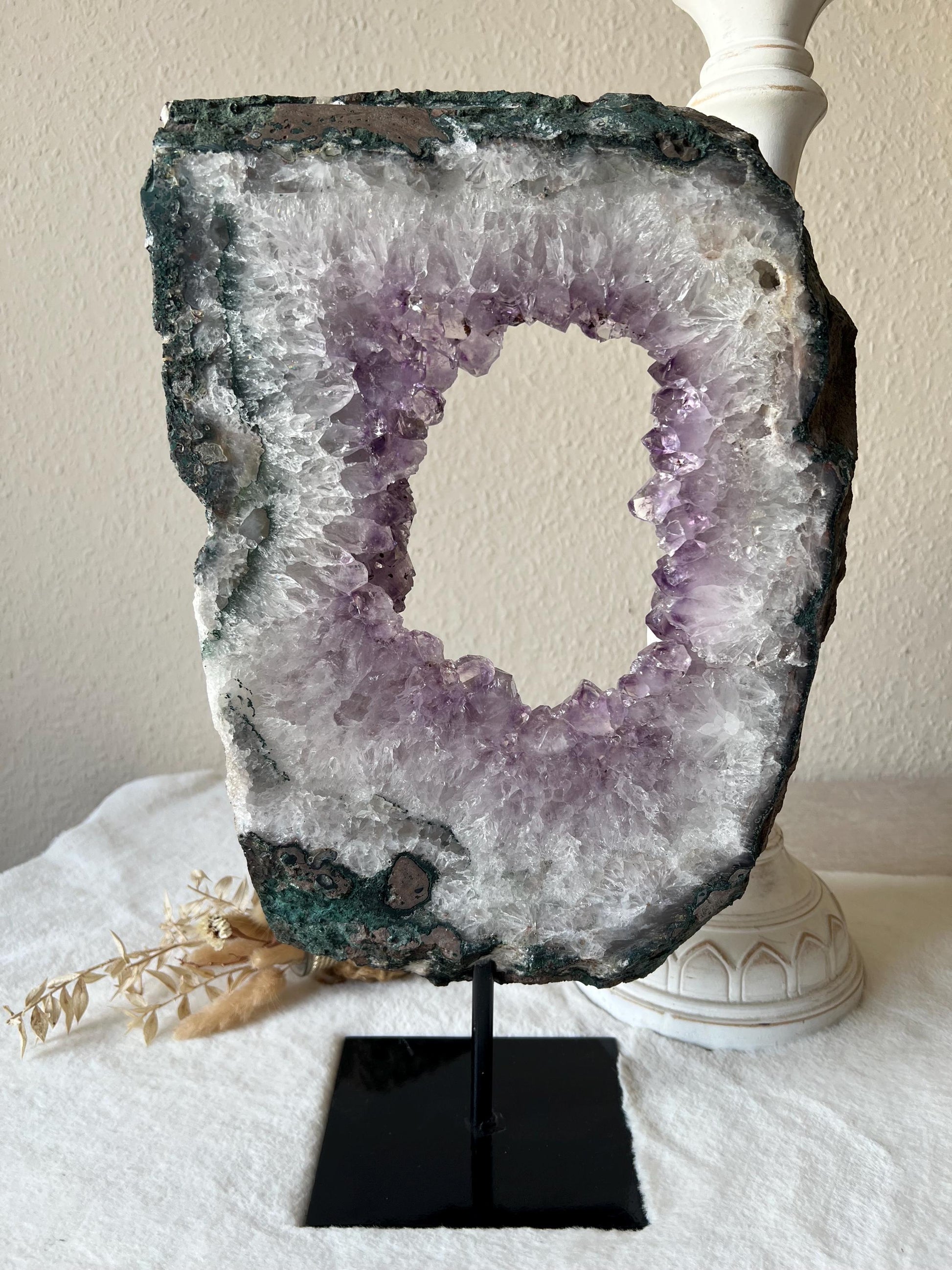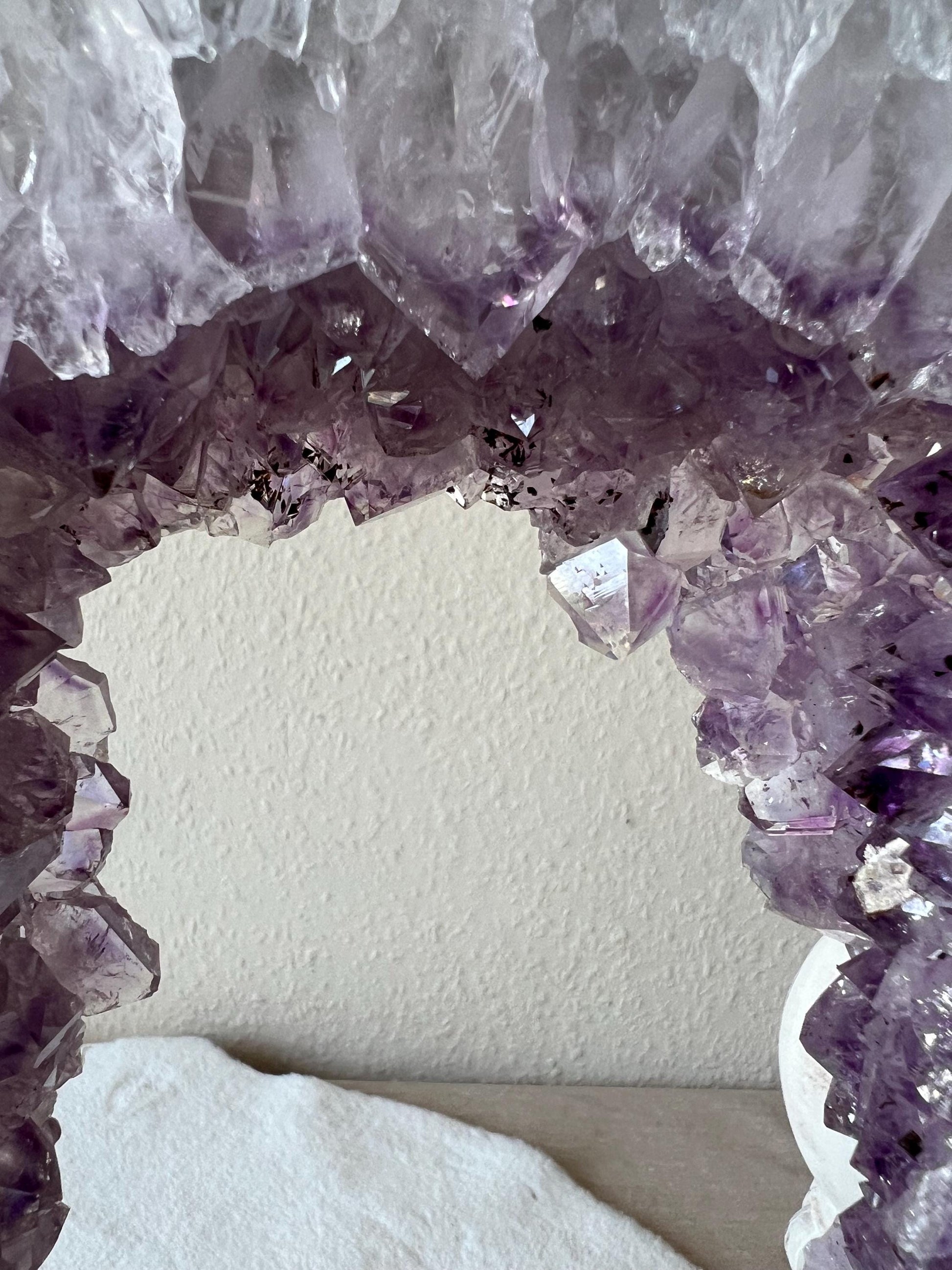 Ob im Wohnraum, Praxisbereich oder an einem spirituellen Ort - dieses Amethyst Portal zieht die Blicke auf sich und lädt zum Innehalten ein.