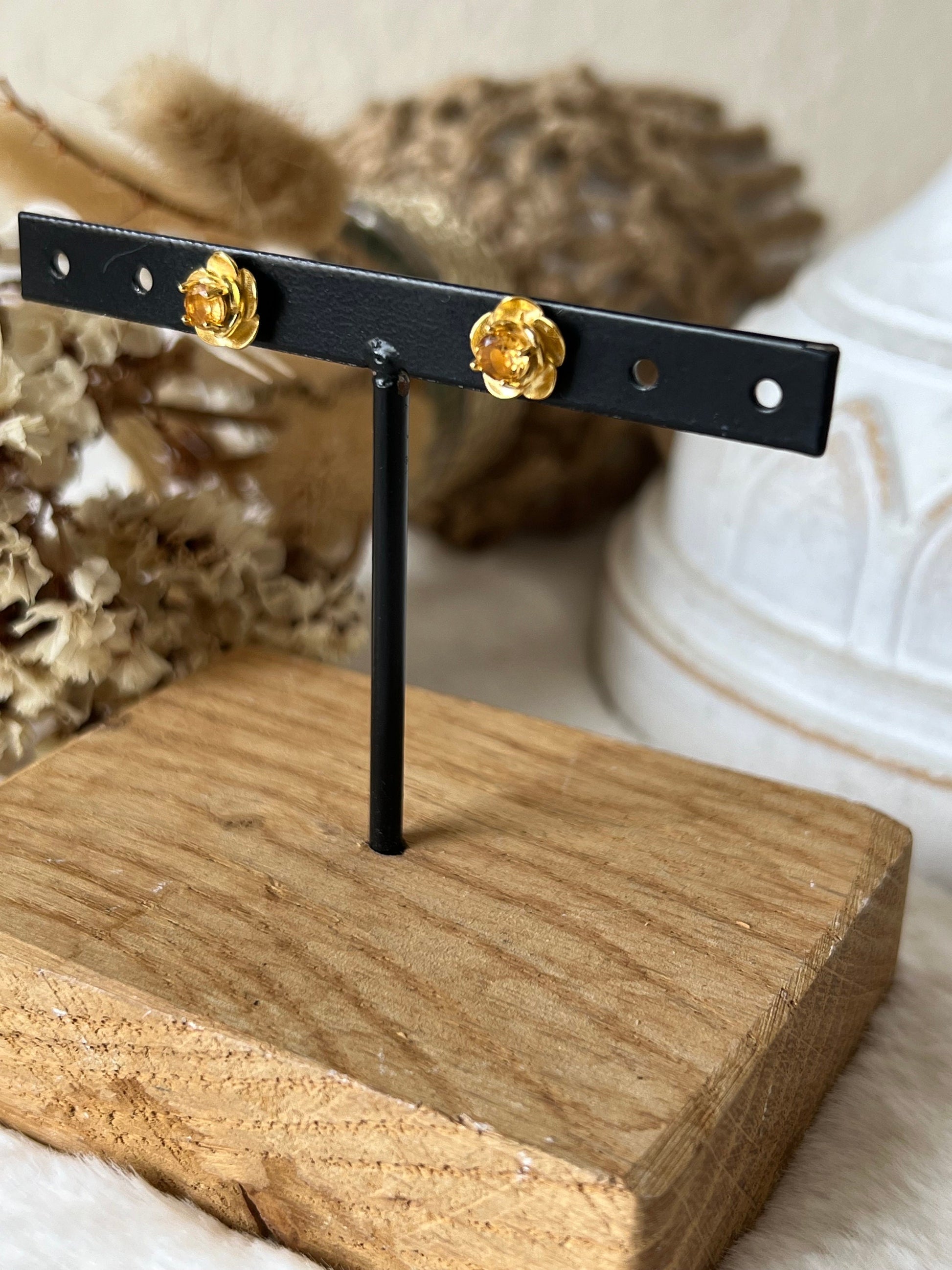 Garnet | Citrine | Amethyst Rose Stud Earrings 925 Sterling Silver / 18k Gold Plated