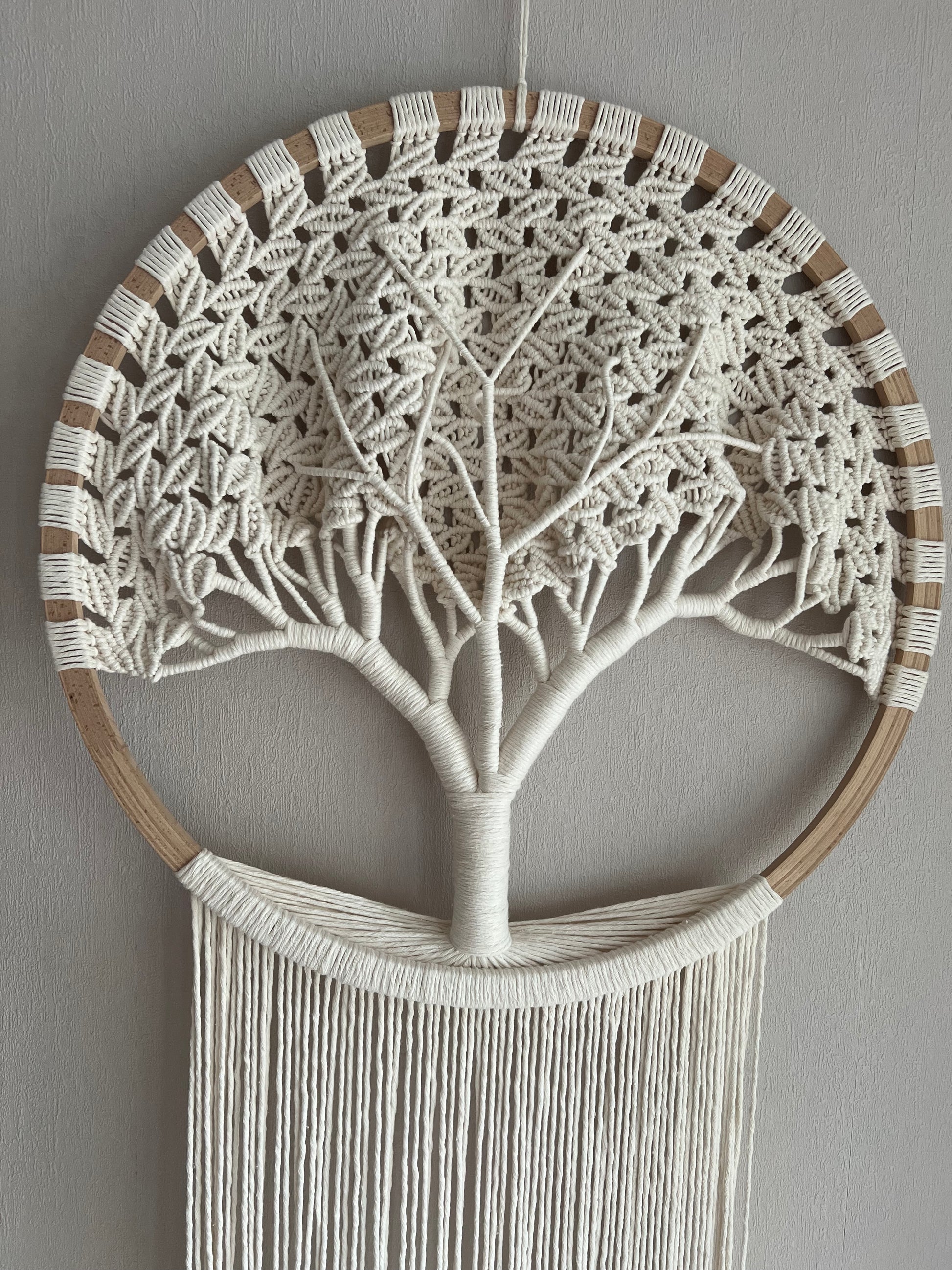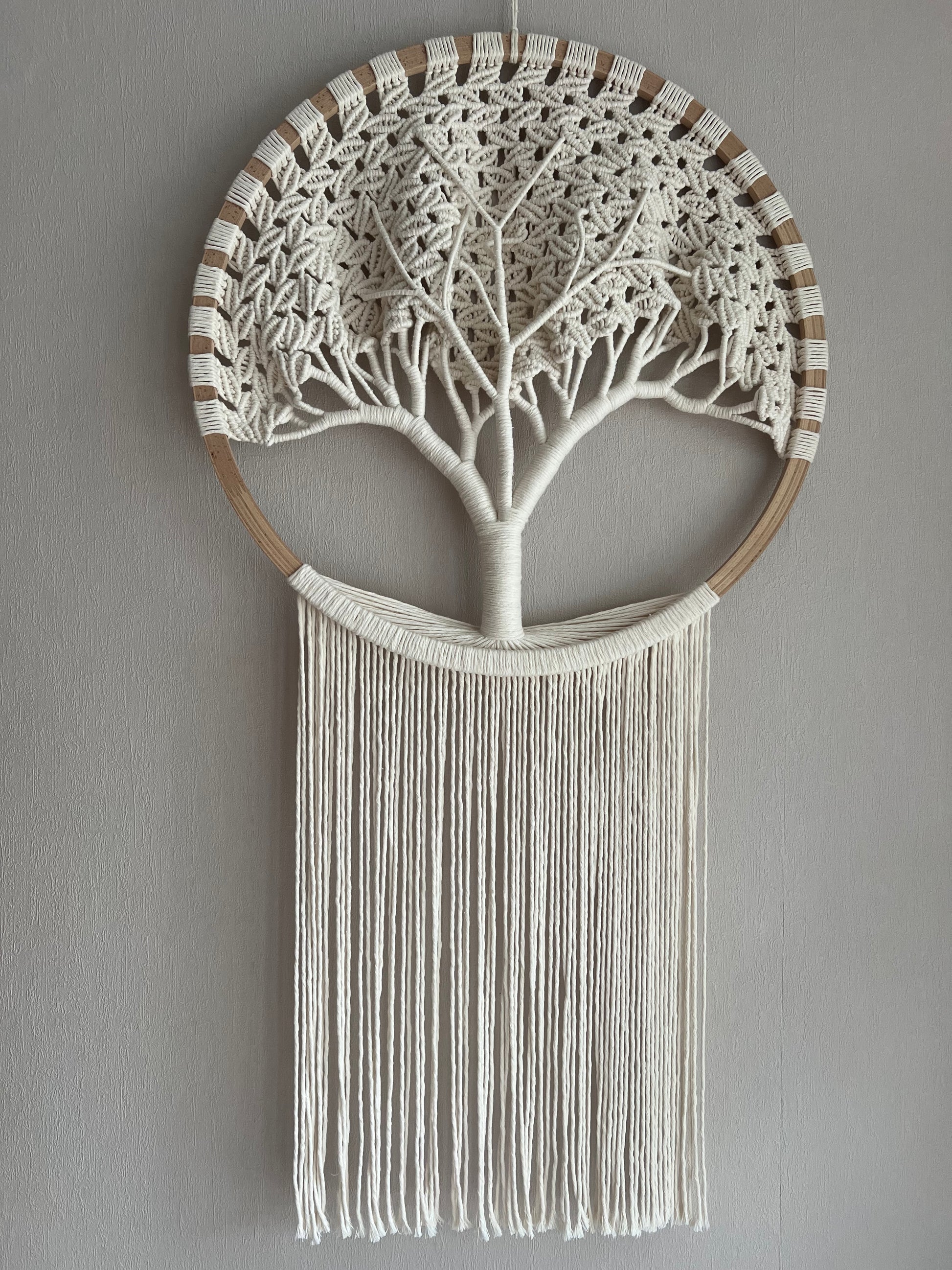 Dieser 3D Makramee Lebensbaum ist ein echtes Unikat – von mir vollständig von Hand geknüpft und mit einer eigens entwickelten Technik gefertigt, die nur ich verwende.