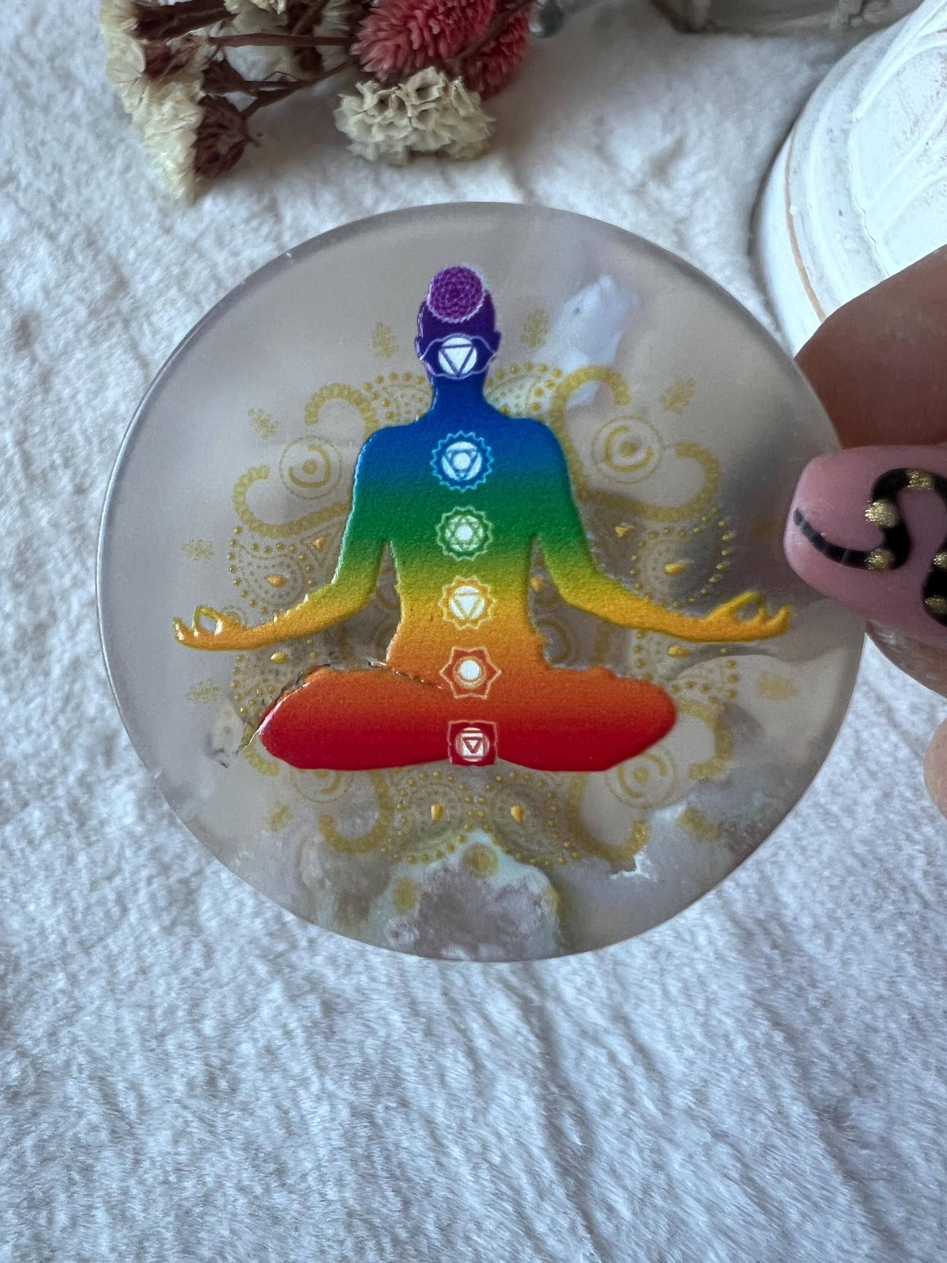 🌿 Anwendung einer Achat-Scheibe mit Yoga-Chakra-Symbol 🌿