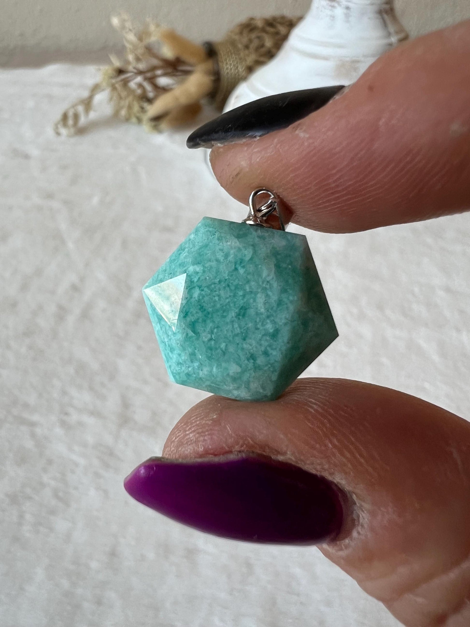 Sanfte Kraft und klare Energie vereint: Dieser Feenstein-Anhänger wurde aus echtem Amazonit in die harmonische Hexagonform geschliffen - ein Symbol für Balance, Hoffnung und innere Ruhe.