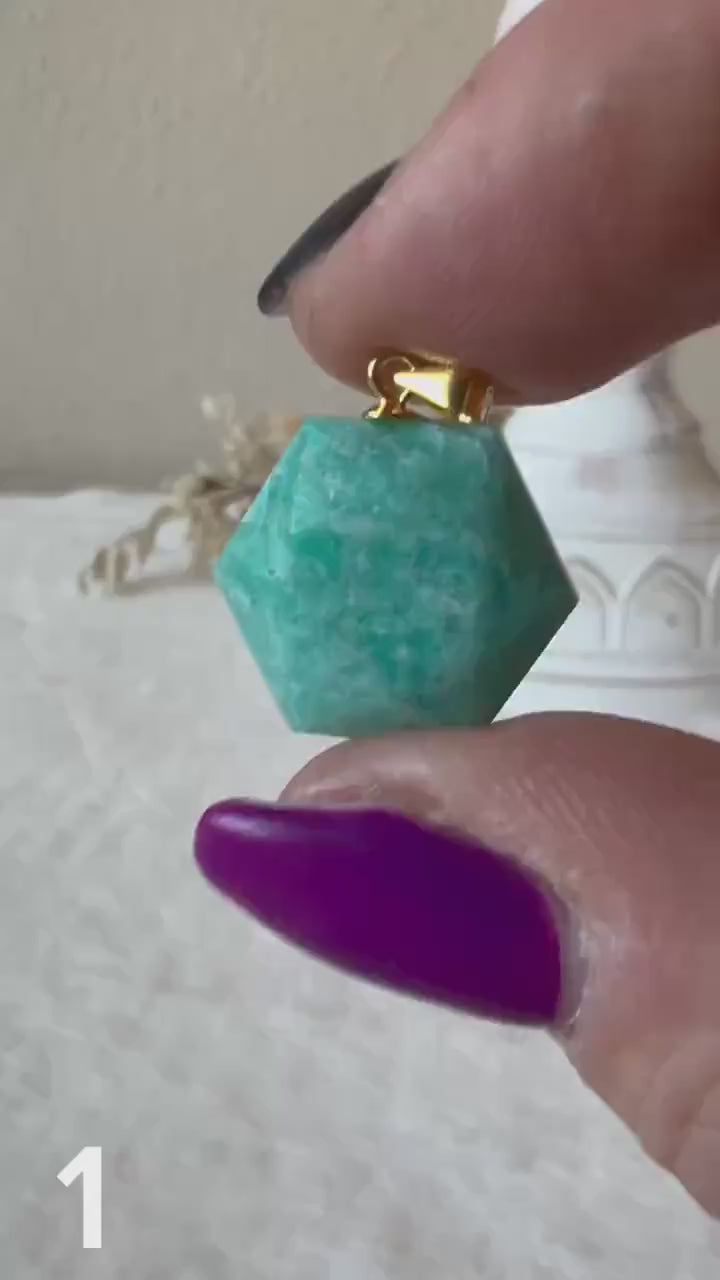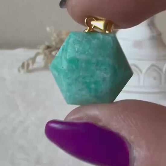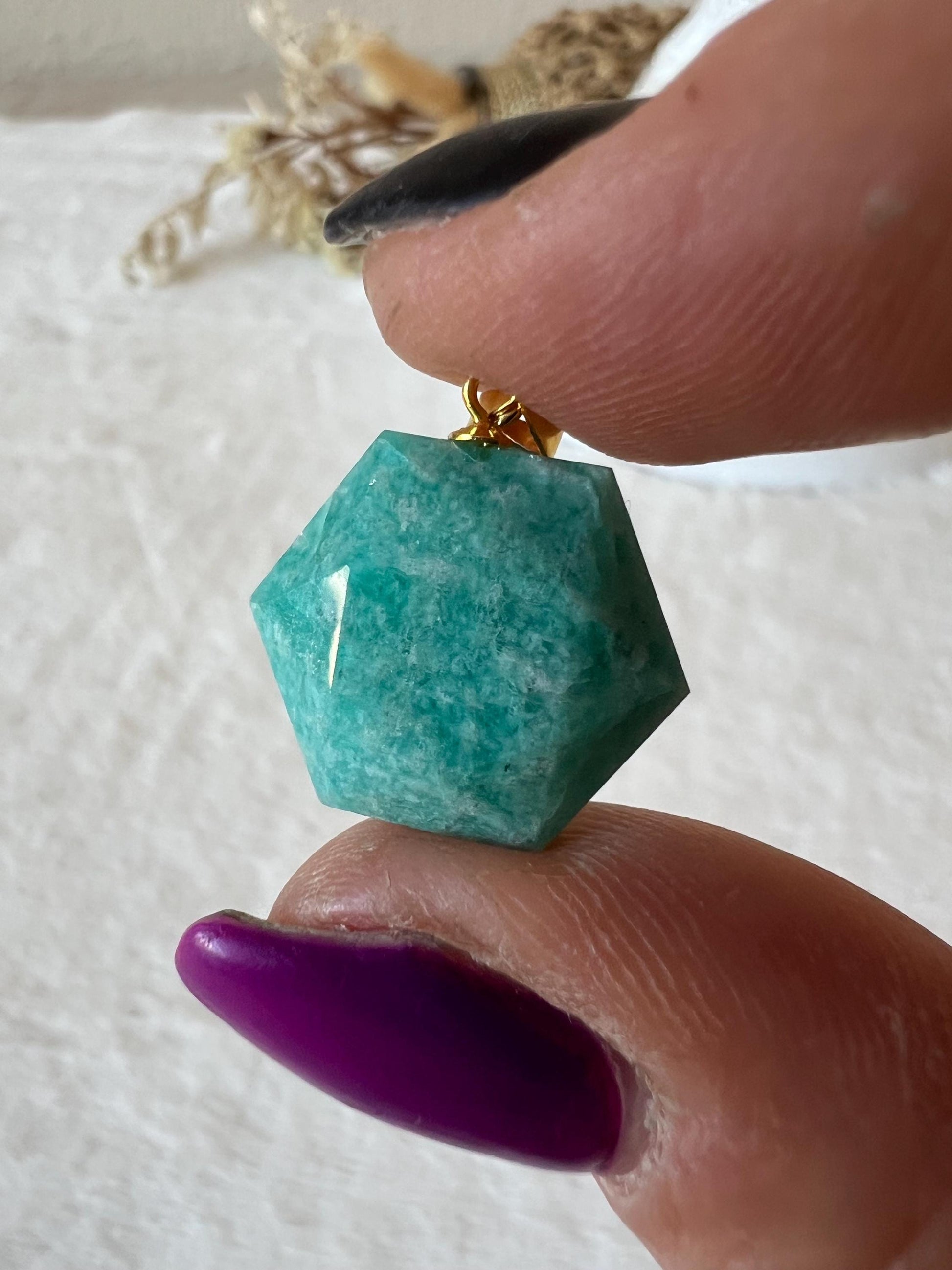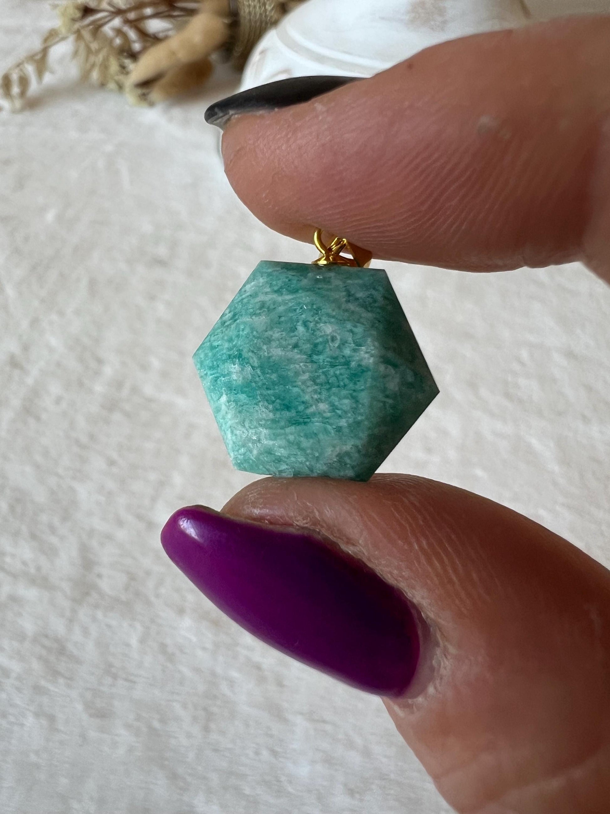 Feenstein Anhänger aus Amazonit - Hexagonform mit 18k vergoldeter Öse