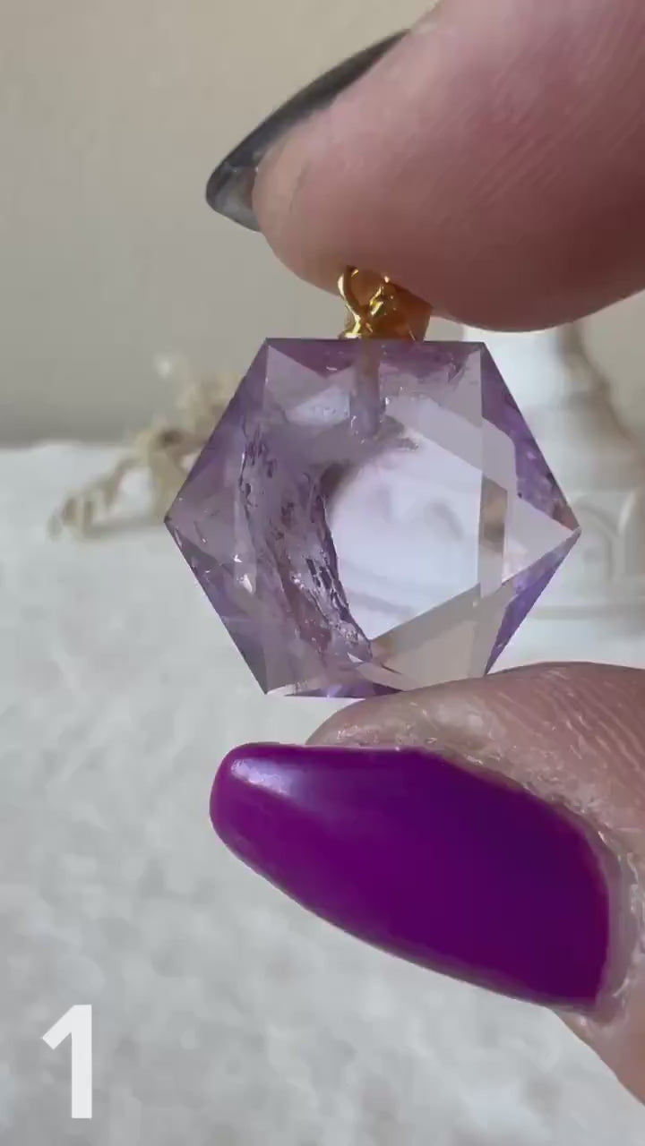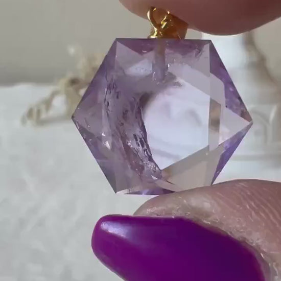 Ein zartes Schmuckstück mit tiefer Bedeutung: Dieser Feenstein-Anhänger besteht aus echtem Amethyst, geschliffen in die harmonische Hexagonform, die für energetisches Gleichgewicht und spirituelle Stabilität steht.