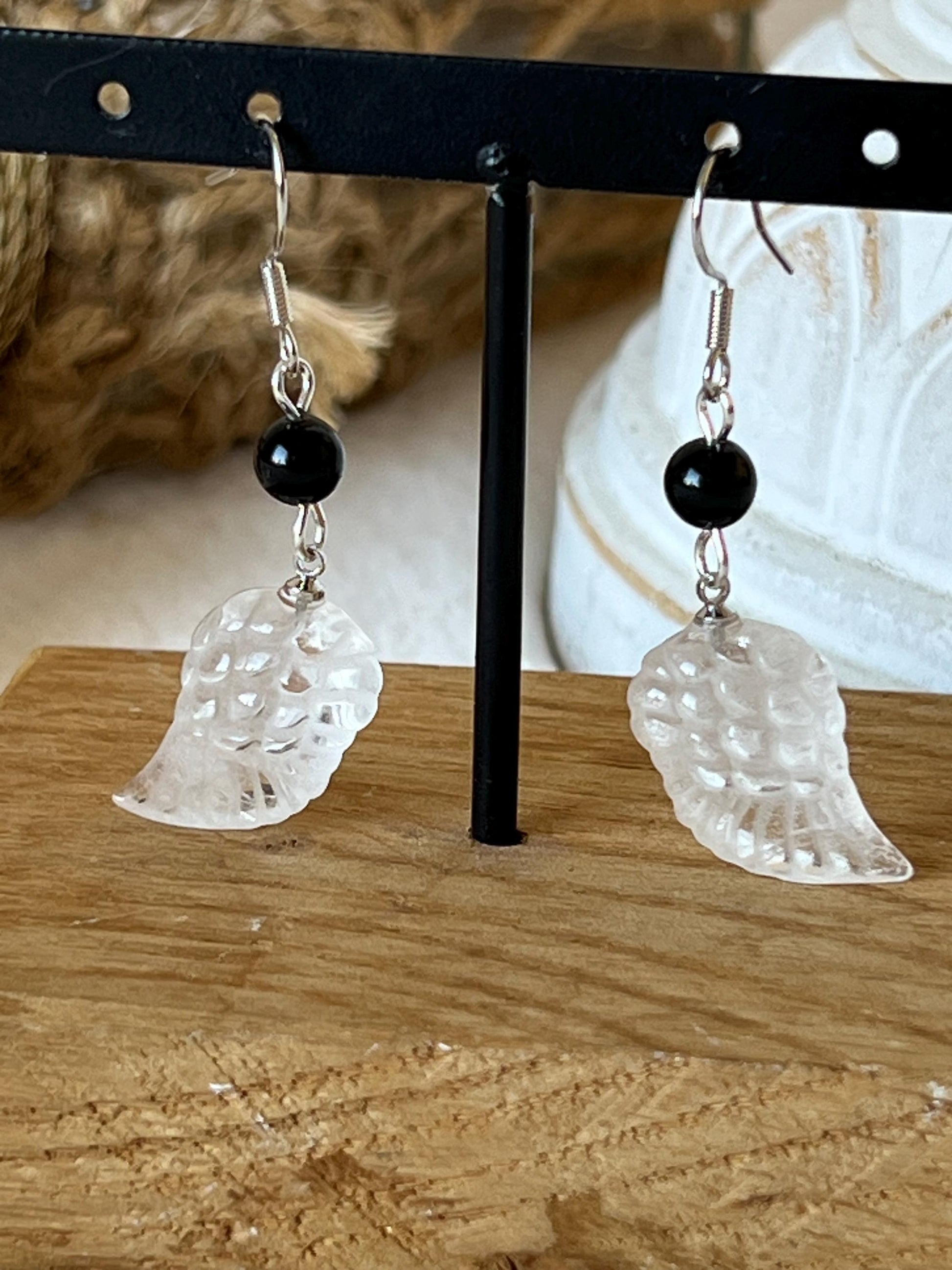 Bergkristall Obsidian Flügel Ohrringe 925 Silber