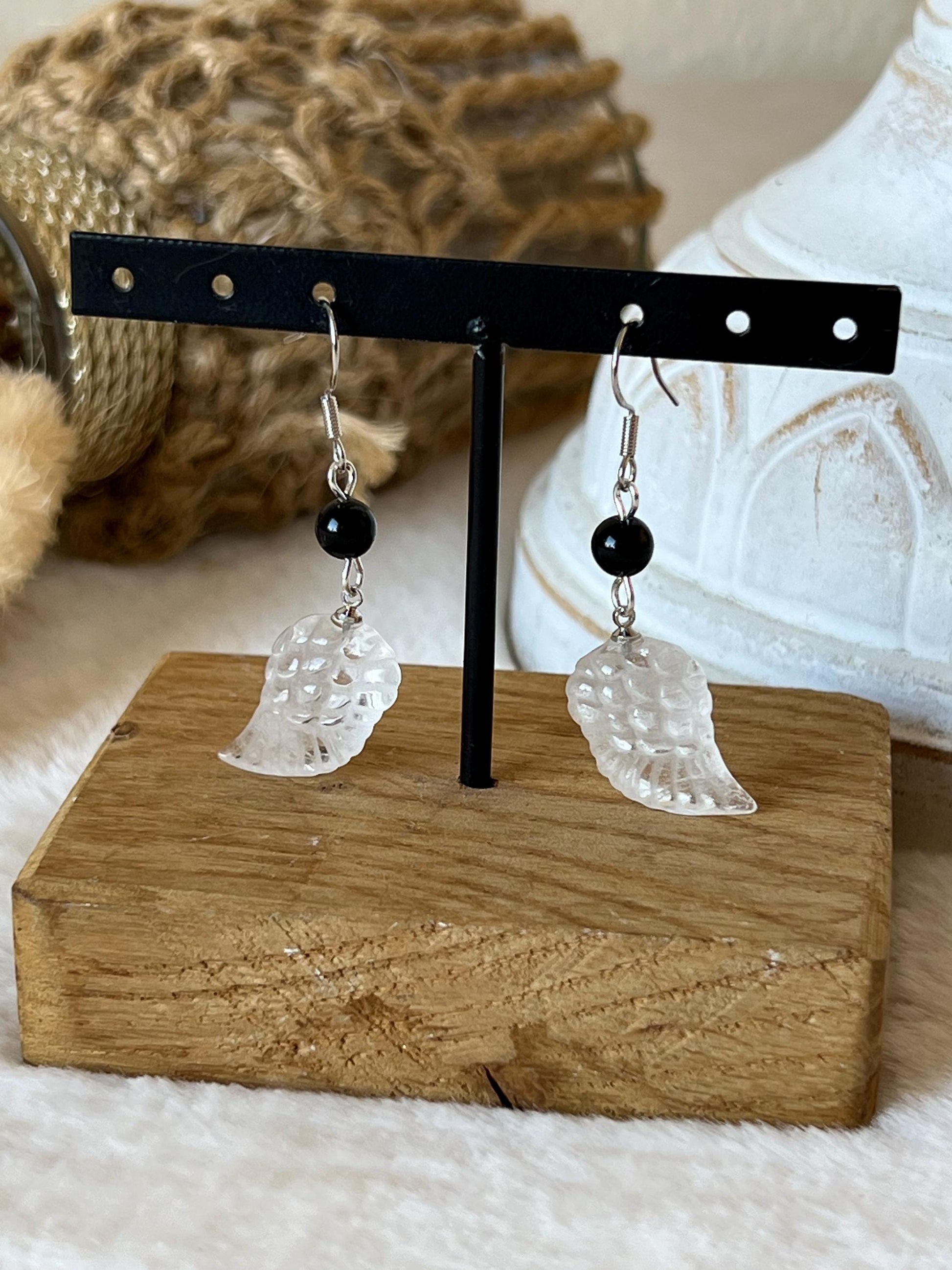 Mystische 925 Silber Hängeohrringe mit Obsidian & Bergkristall-Flügel - Schutz, Klarheit & stilvolle Tiefe