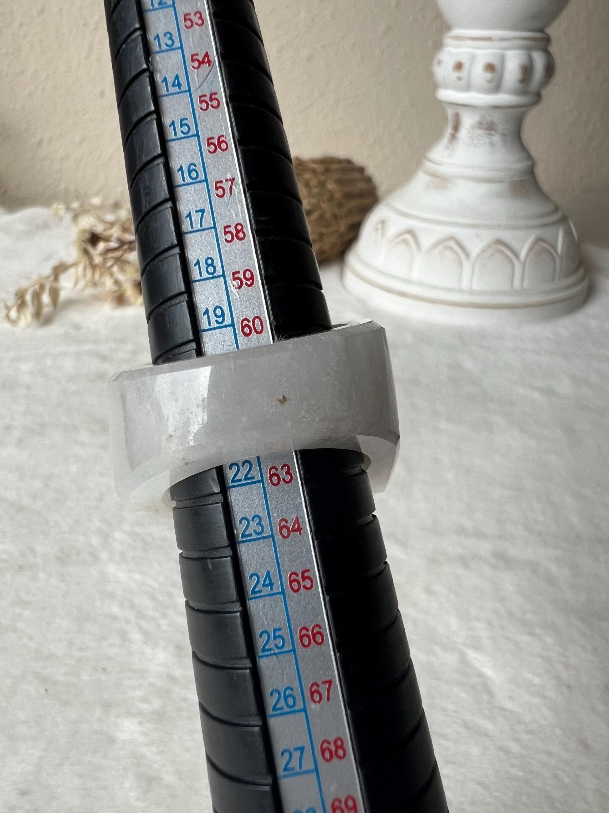 Diese besonderen Ringe aus reinem Bergkristall sind vollständig aus dem kraftvollen, klaren Quarz gefertigt - kein Metall, keine Fassung, nur Stein. Auf der Oberseite erheben sich kleine, naturgewachsene Spitzen, die wie Kristallkronen wirken - zart, energetisch und absolut einzigartig.