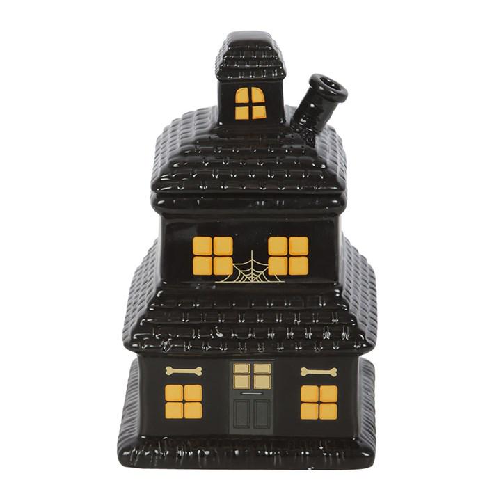 Verleihe deinem Zuhause einen Hauch von geheimnisvoller Eleganz mit diesem Haunted House Ölbrenner in tiefem Schwarz. Das detailreiche Hausdesign sorgt für ein sanftes, warmes Kerzenlicht und schafft eine atmosphärische Stimmung - perfekt für Herbstabende, Halloween oder alle, die dunkle Ästhetik lieben.