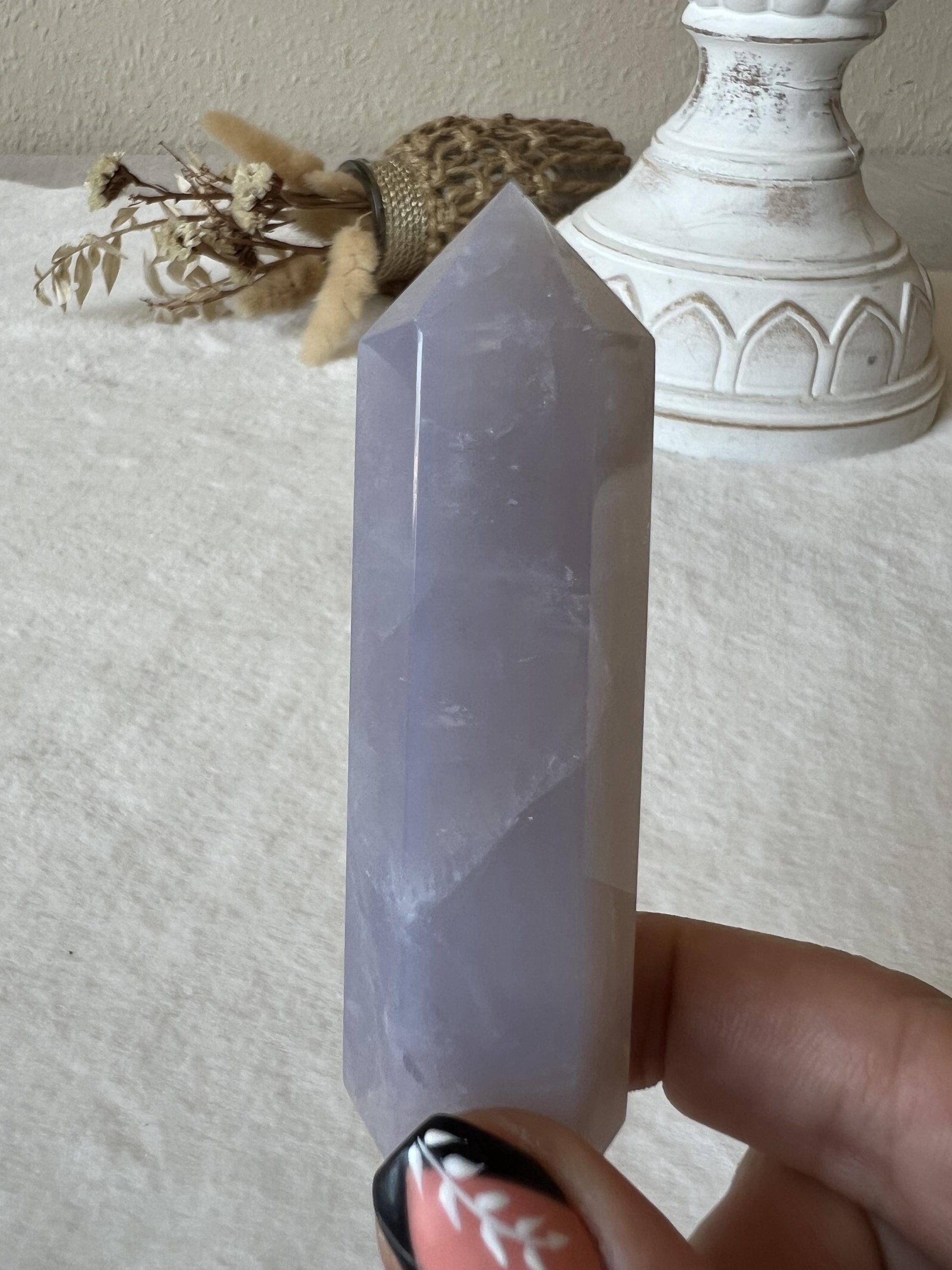 Dieser elegante blaue Rosenquarz Turm vereint die beruhigende Schönheit des Edelsteins mit der kraftvollen Form einer Energie-Säule. Der Turm lenkt die Energie gebündelt nach oben und gilt als kraftvolles Werkzeug zur Aktivierung, Reinigung und Ausrichtung von Energiefeldern. Seine zarten Blautöne verleihen ihm eine ruhige, friedvolle Ausstrahlung und machen ihn zugleich zu einem besonderen Blickfang für Wohnräume, Meditationsplätze oder Altarbereiche.