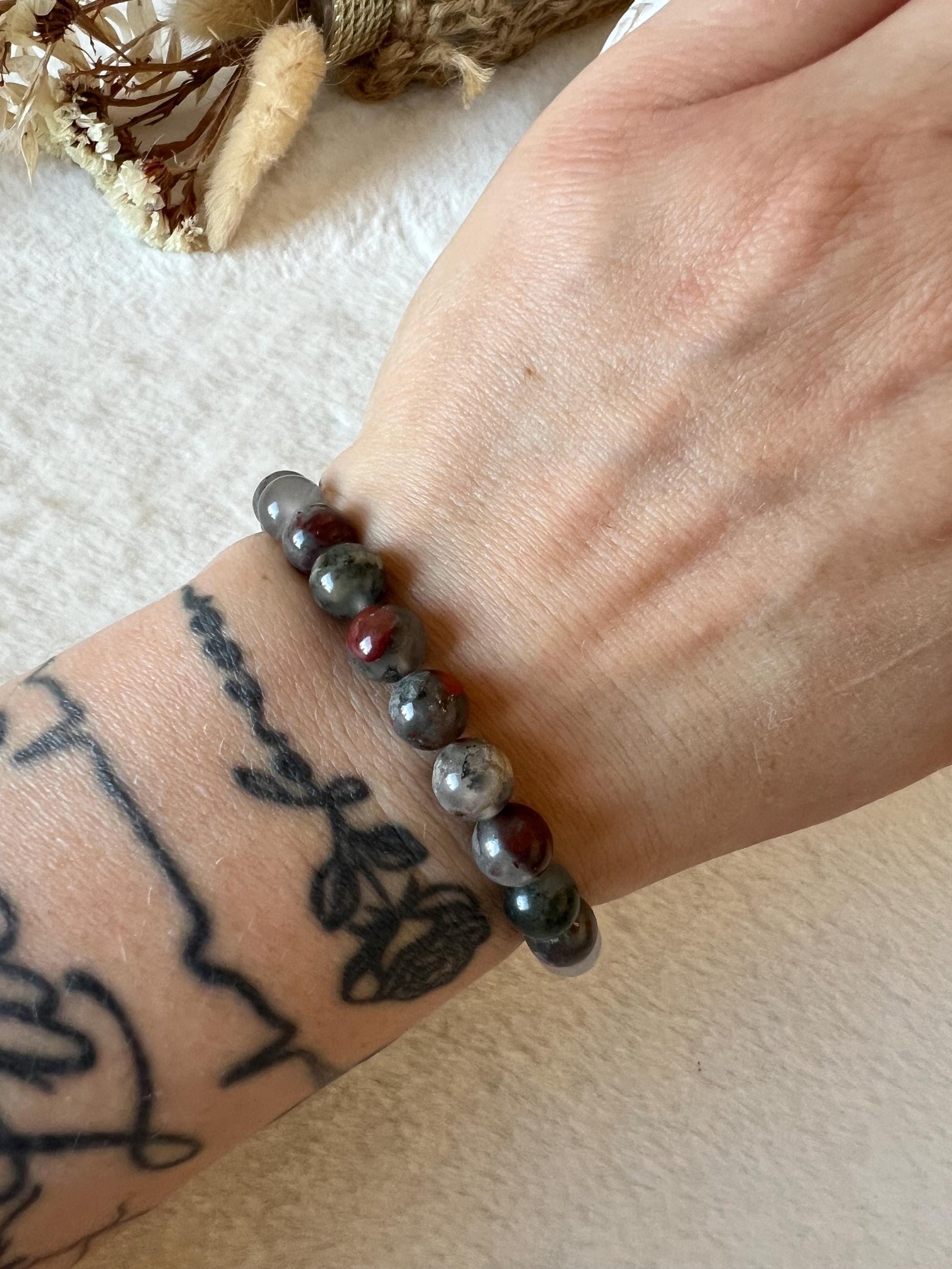 Afrikanischer Blutjaspis Perlenarmband (8 mm) - Kraft & Schutz in einer einzigartigen Maserung