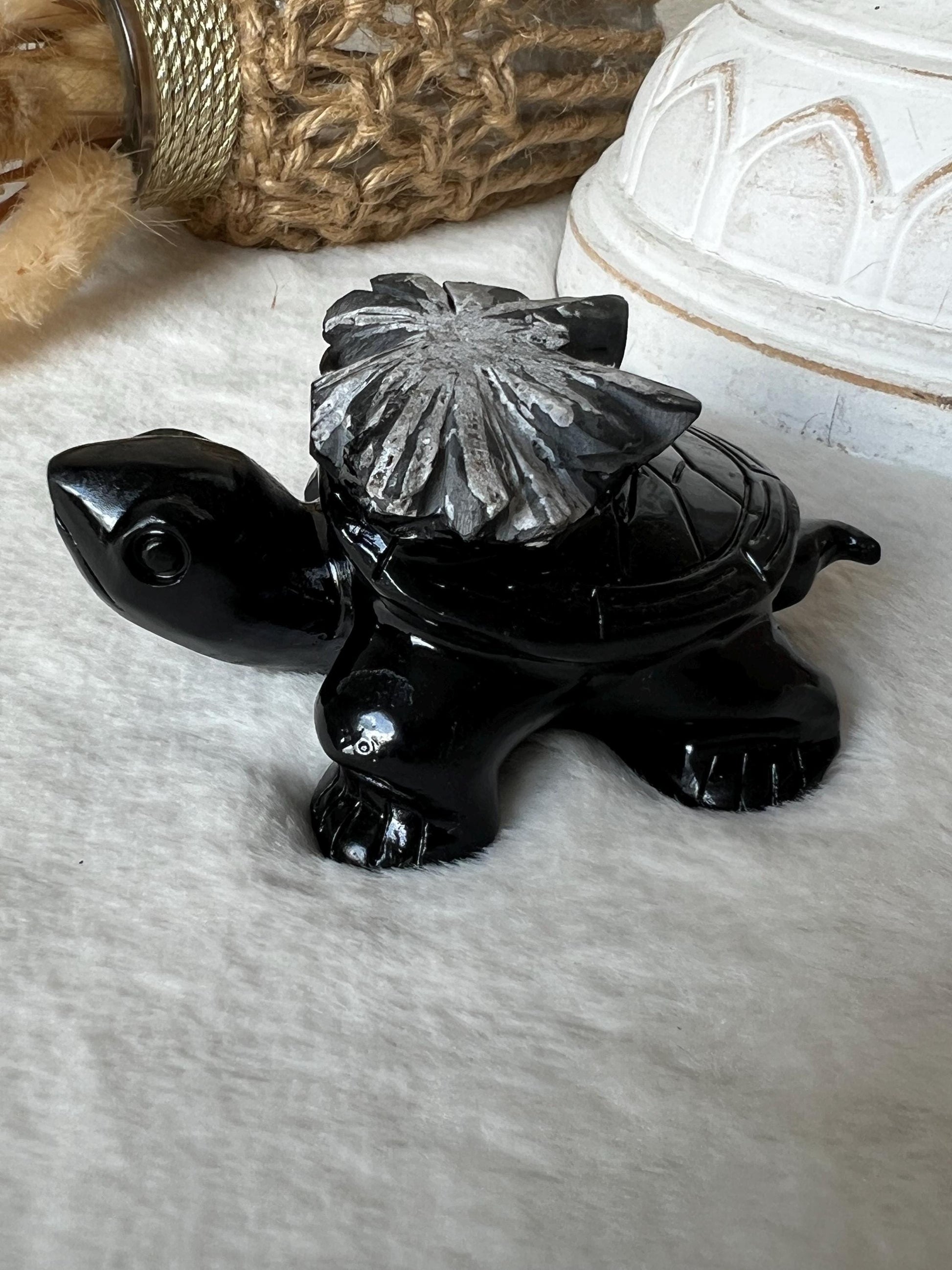 Die Schildkröte als Symbol für Geduld, Weisheit und Beständigkeit trifft hier auf die Energie des Wandels und der inneren Entfaltung - ein harmonisches Zusammenspiel von Natur, Symbolik und Handwerkskunst.