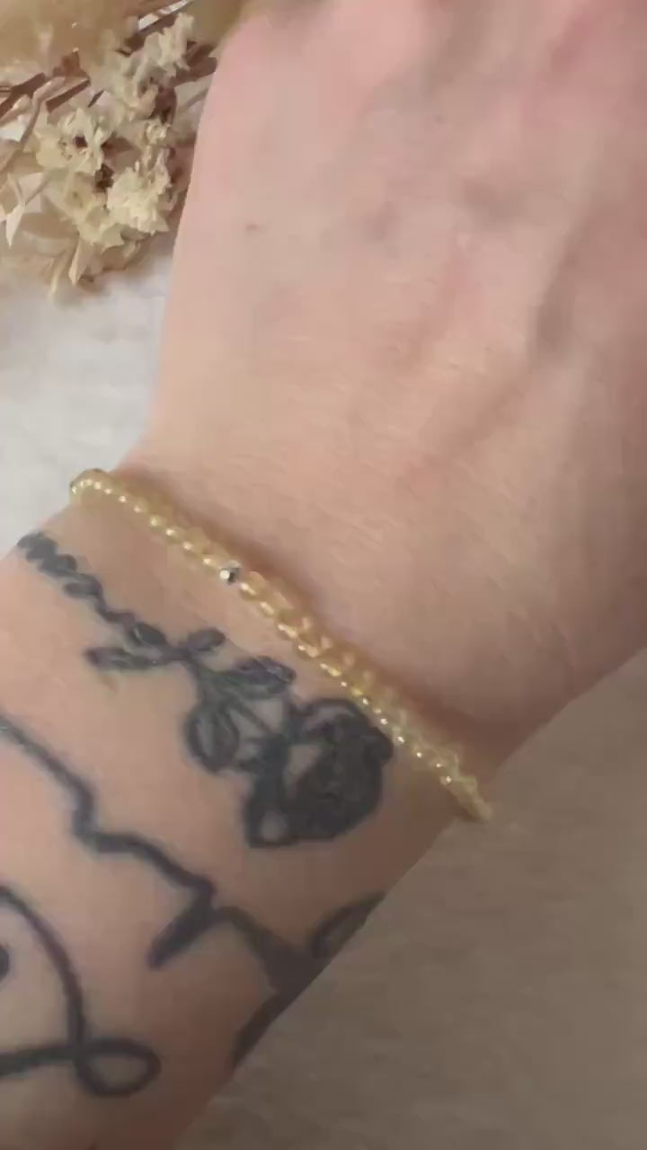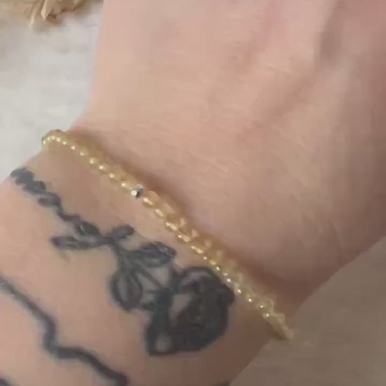 Die goldfarbene Perle in der Mitte symbolisiert Licht, Fülle und Vitalität und verstärkt die positiven, sonnigen Eigenschaften des Citrins. Während der Citrin für Erfolg und Lebensfreude steht, bringt Gold Wärme und Kraft ins Spiel - eine perfekte Kombination für Energie, Wohlstand und innere Stärke.