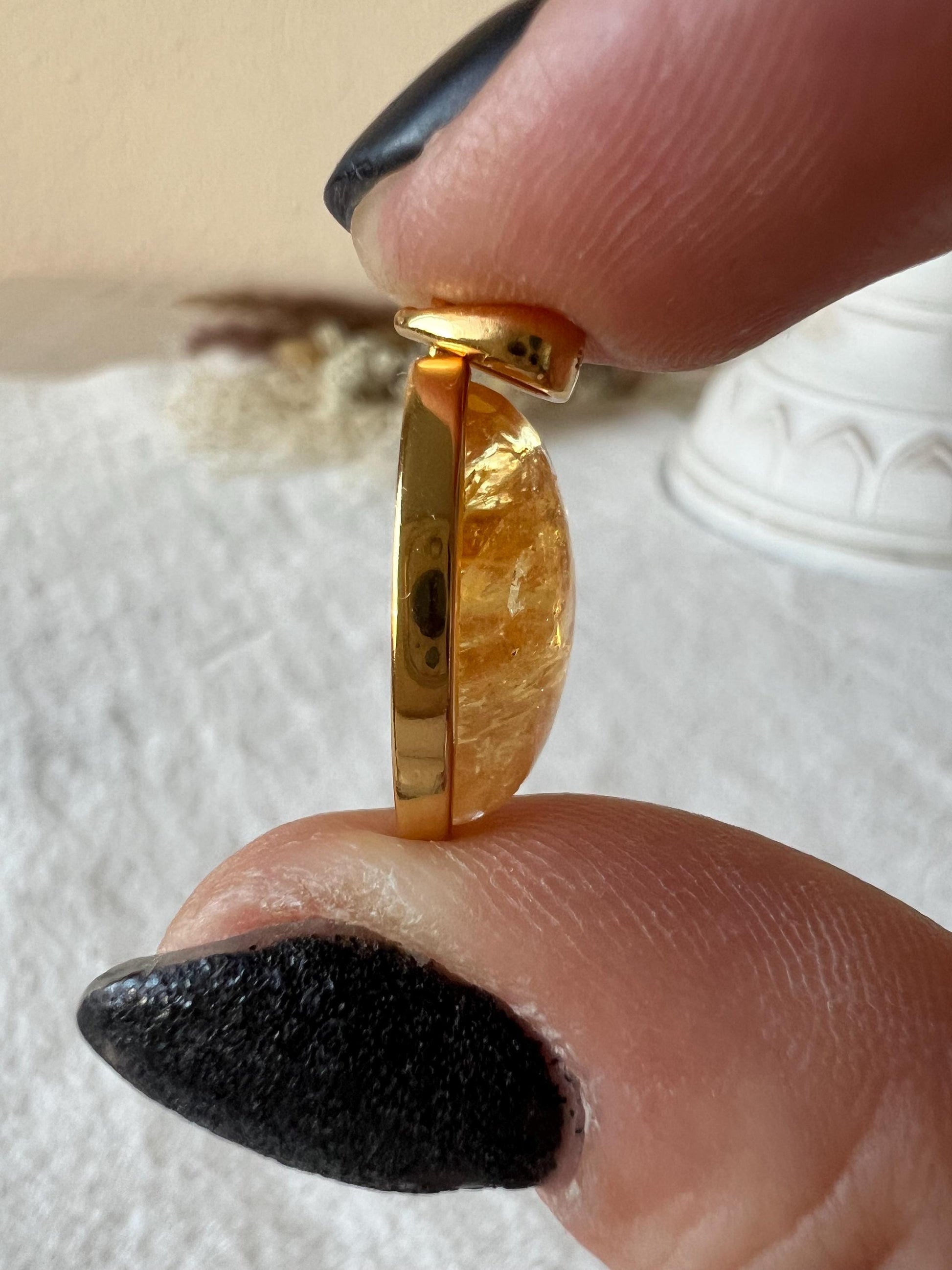 Ein strahlender Citrin-Anhänger aus 925 Silber, hochwertig vergoldet, wodurch der warme Goldton perfekt mit dem natürlichen Sonnenglanz des Citrins harmoniert.
