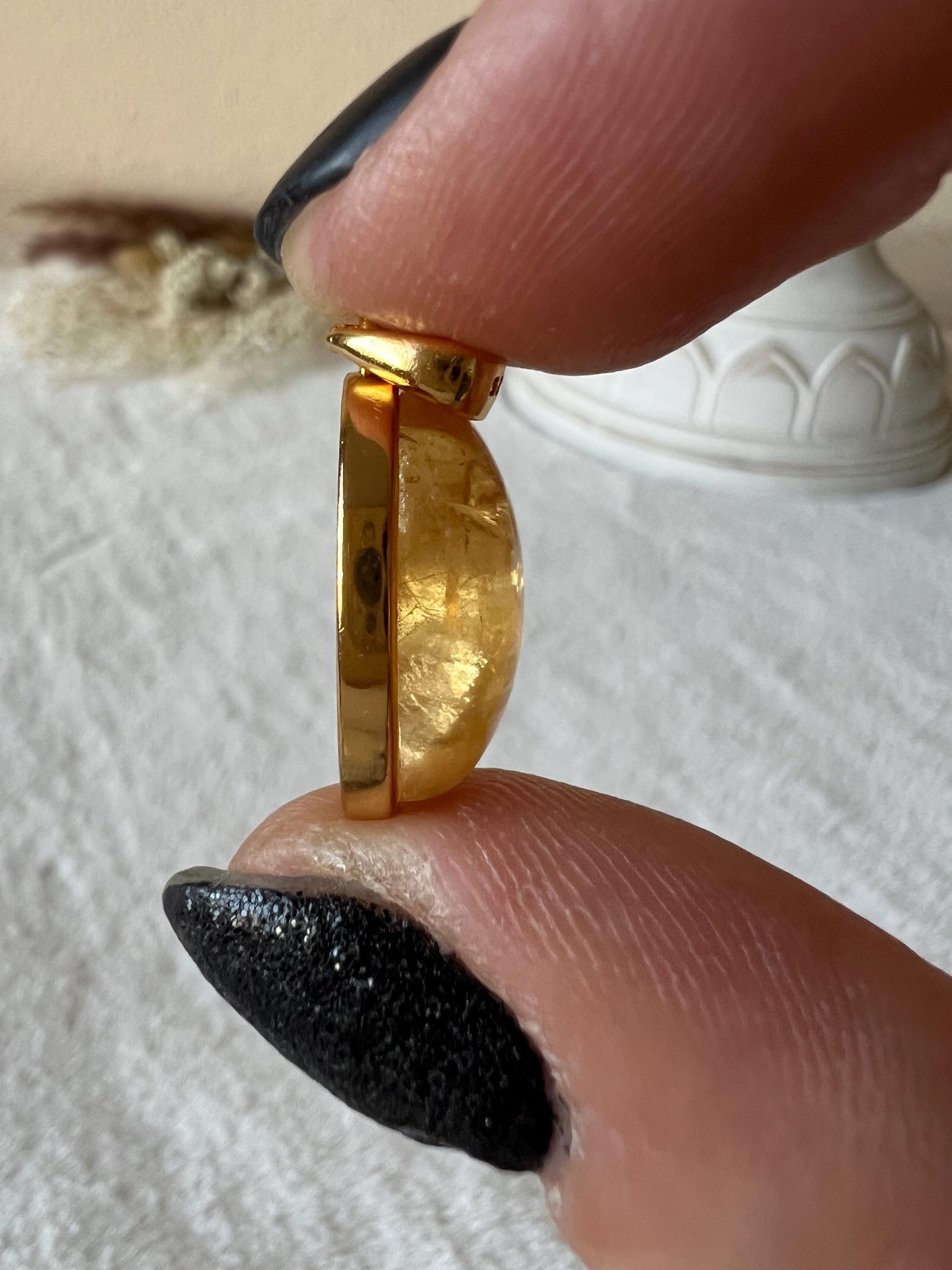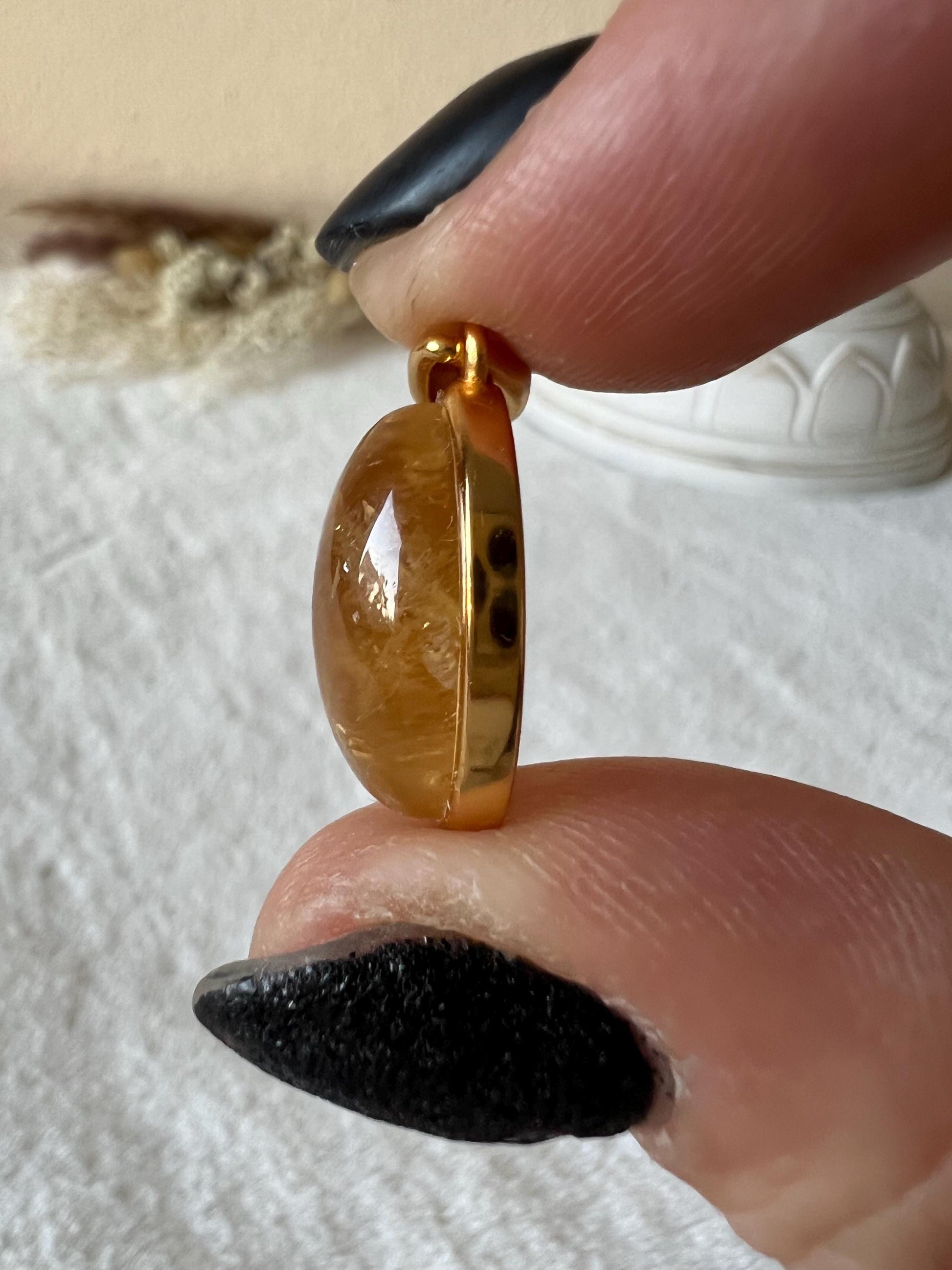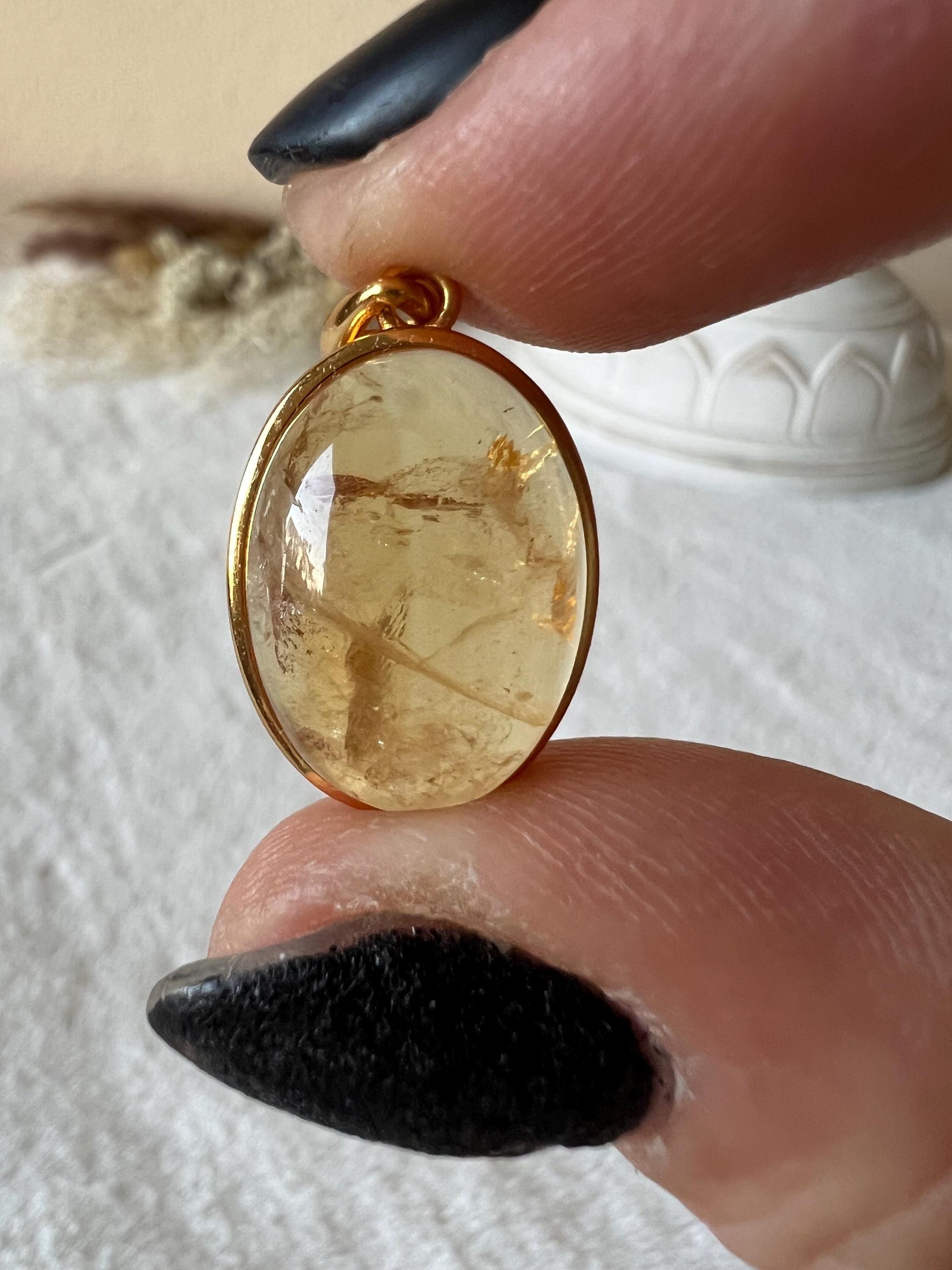 Dieser Anhänger vereint das Funkeln von Gold mit der lichtvollen Energie des Citrins und wirkt dadurch besonders luxuriös.