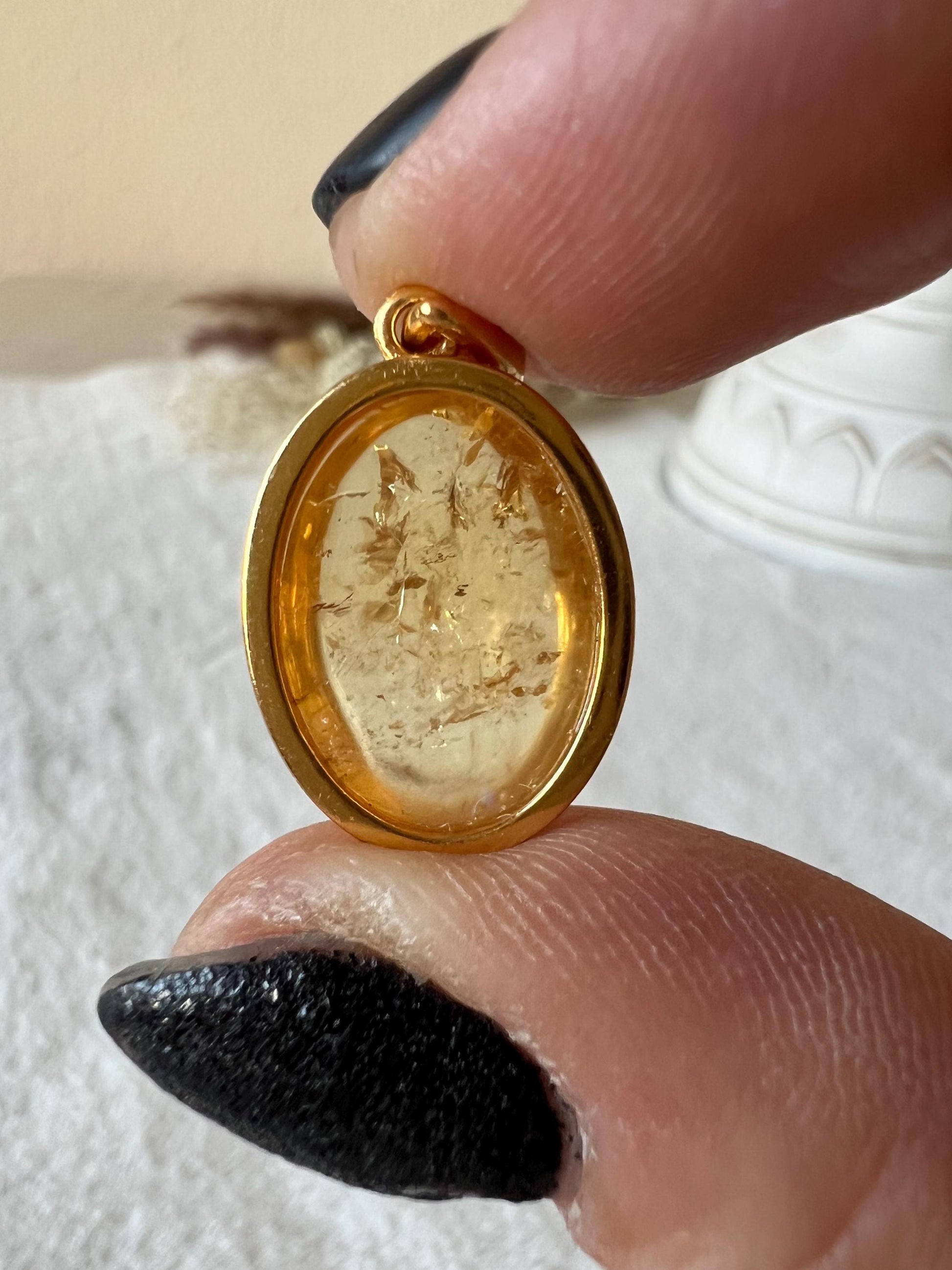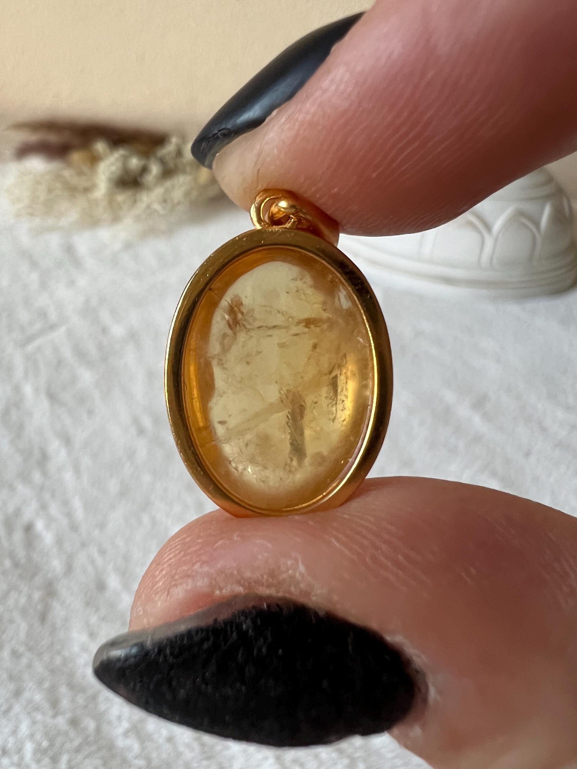 ✨Citrin Kettenanhänger - 925 Silber vergoldet (oval) ✨