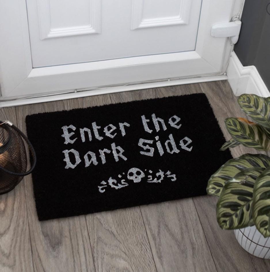 Willkommen an einer Schwelle, die mehr als nur ein Raumeingang ist. Diese markante Fußmatte begrüßt Gäste mit einem Augenzwinkern - und einer klaren Botschaft: Nur wer den Mut hat, darf die dunkle Seite betreten. Der Schriftzug „Enter the Dark Side" in kontrastreichem Grau auf tiefschwarzem Hintergrund verleiht jedem Zuhause einen Hauch von Gothic, Mystery und Stil.