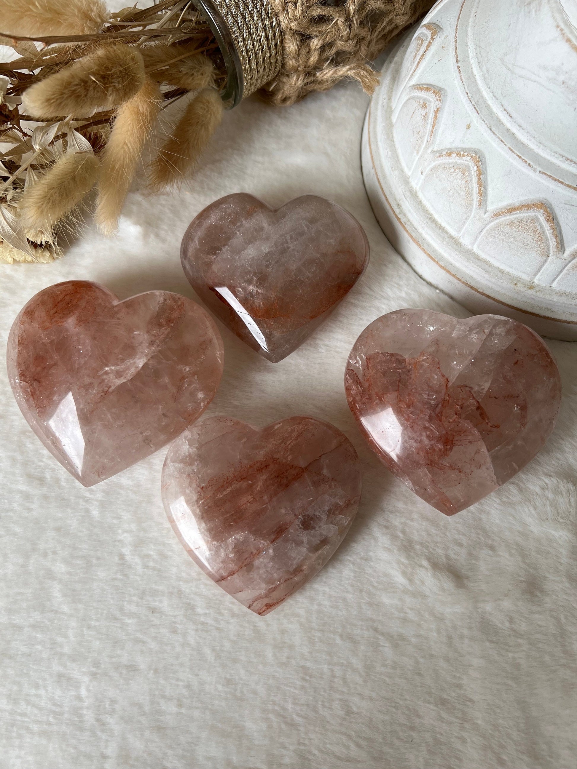 • Die Herzform steht universell für Liebe und Zuneigung. In Kombination mit der energetischen Stärke des Feuerquarzes verstärken diese Herzen die Botschaft von Leidenschaft, Energie und Vitalität.