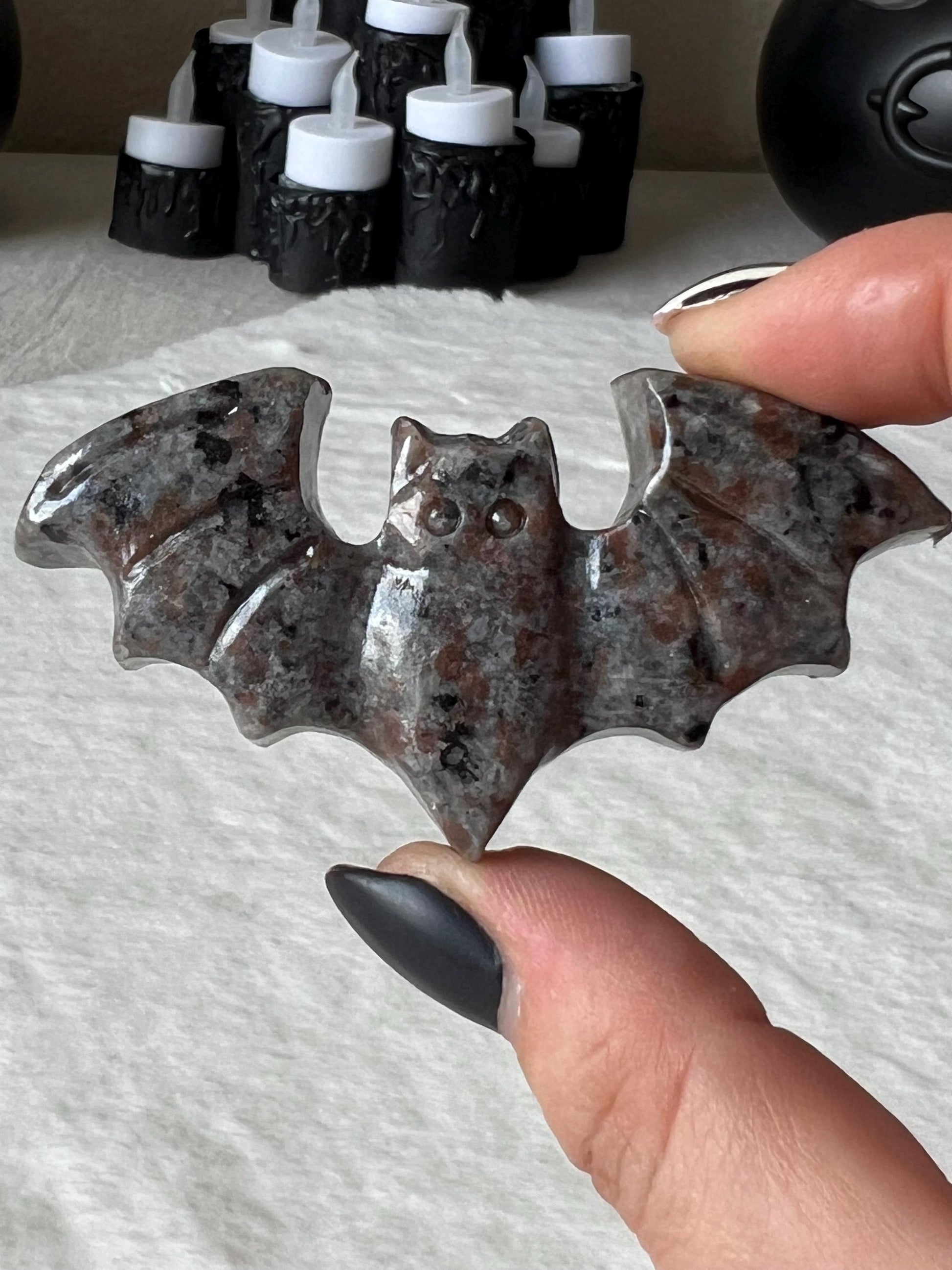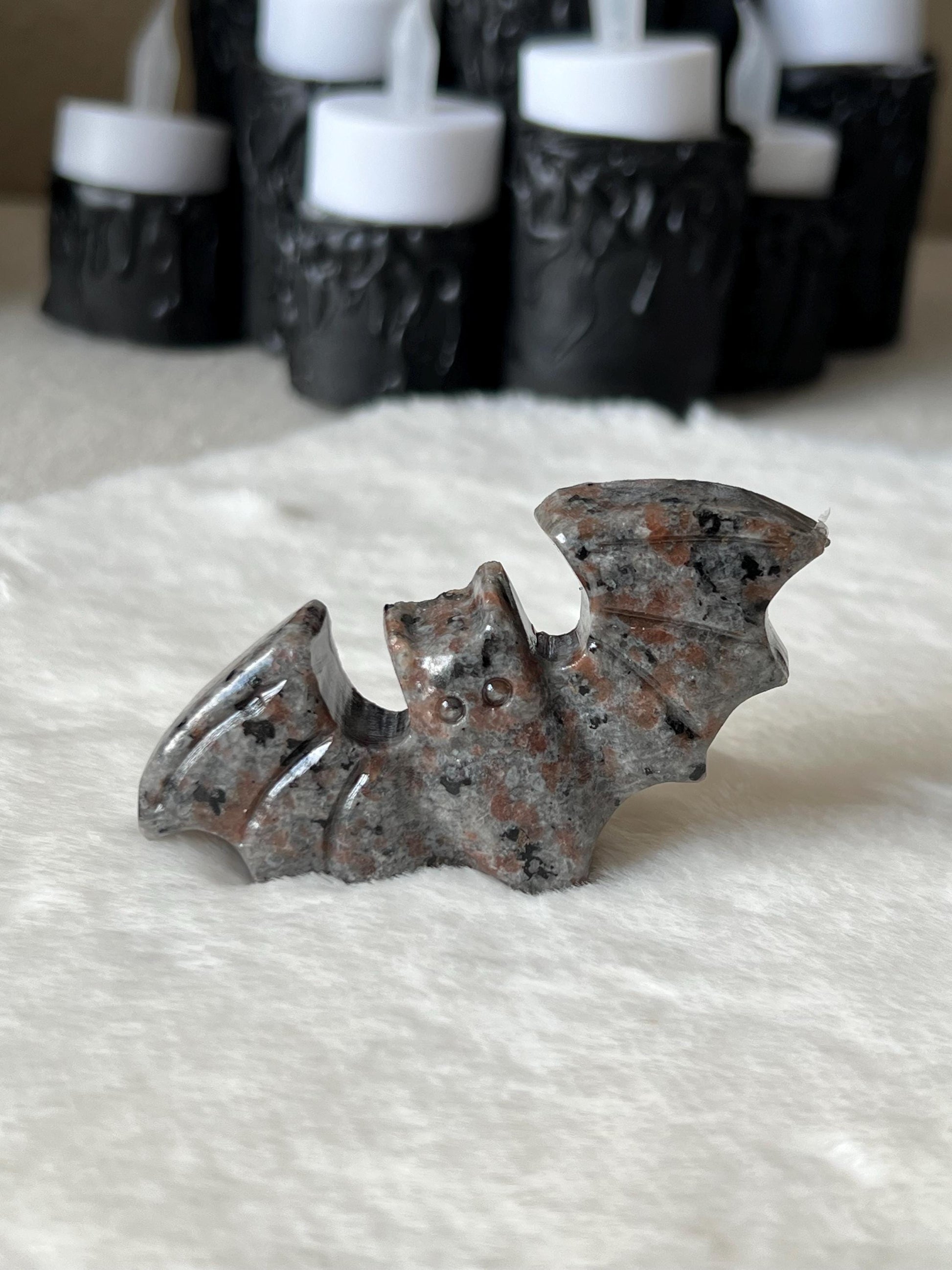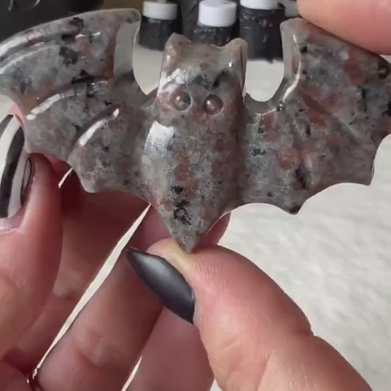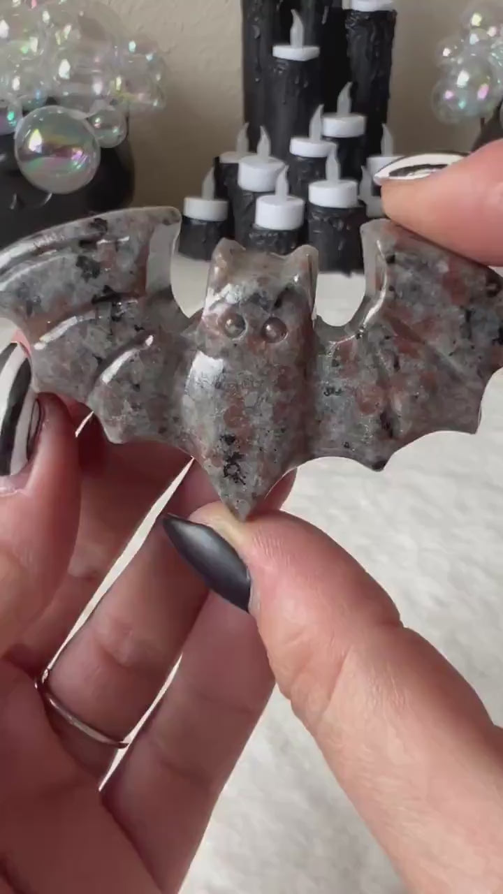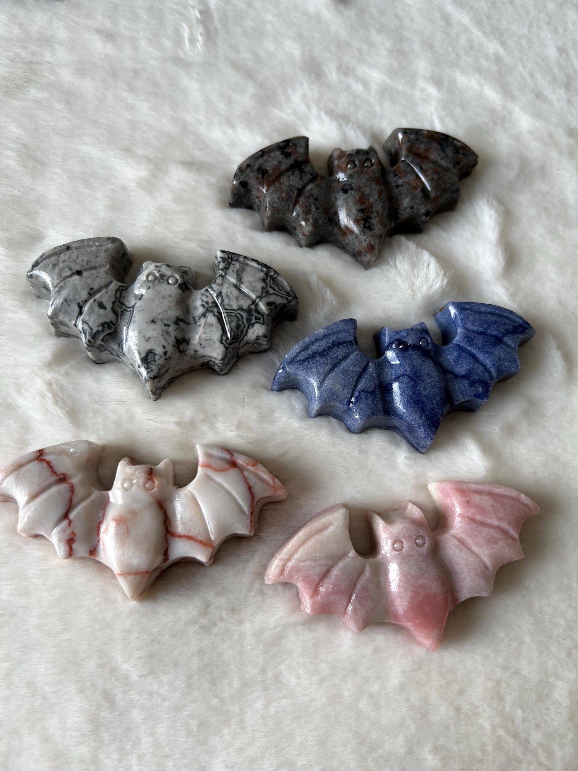 Diese bezaubernden kleinen Fledermaus-Carvings aus verschiedenen Edelsteinen vereinen symbolische Tiefe mit den einzigartigen Eigenschaften jedes Steins. Perfekt als spirituelle Begleiter oder als dekorative Elemente, bringen sie die schützende und transformierende Energie der Fledermaus mit den nachgesagten Heilwirkungen ihrer Materialien zusammen.