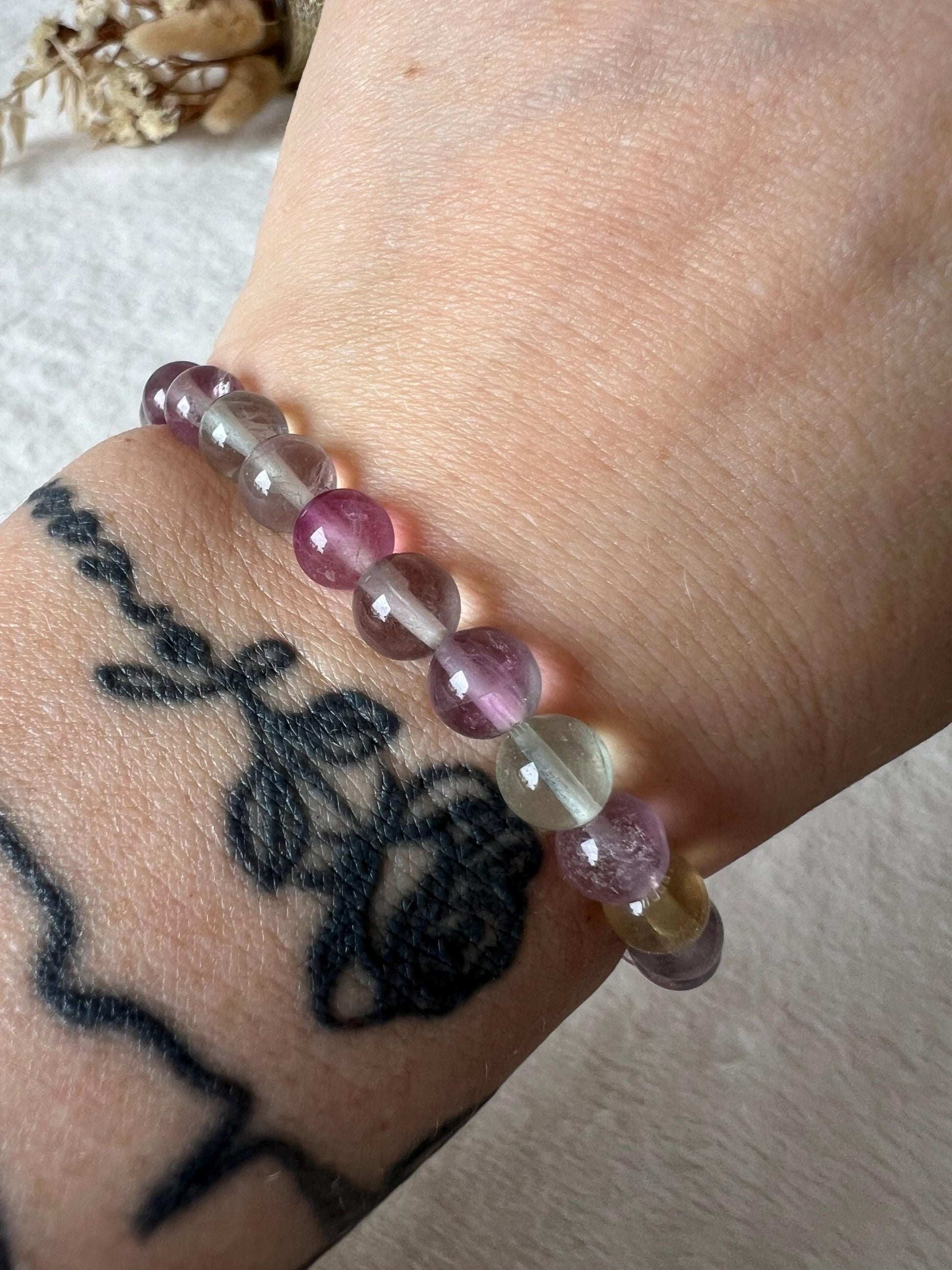 Fluorit Armband - Rosé, Grün & Gelb - 7mm