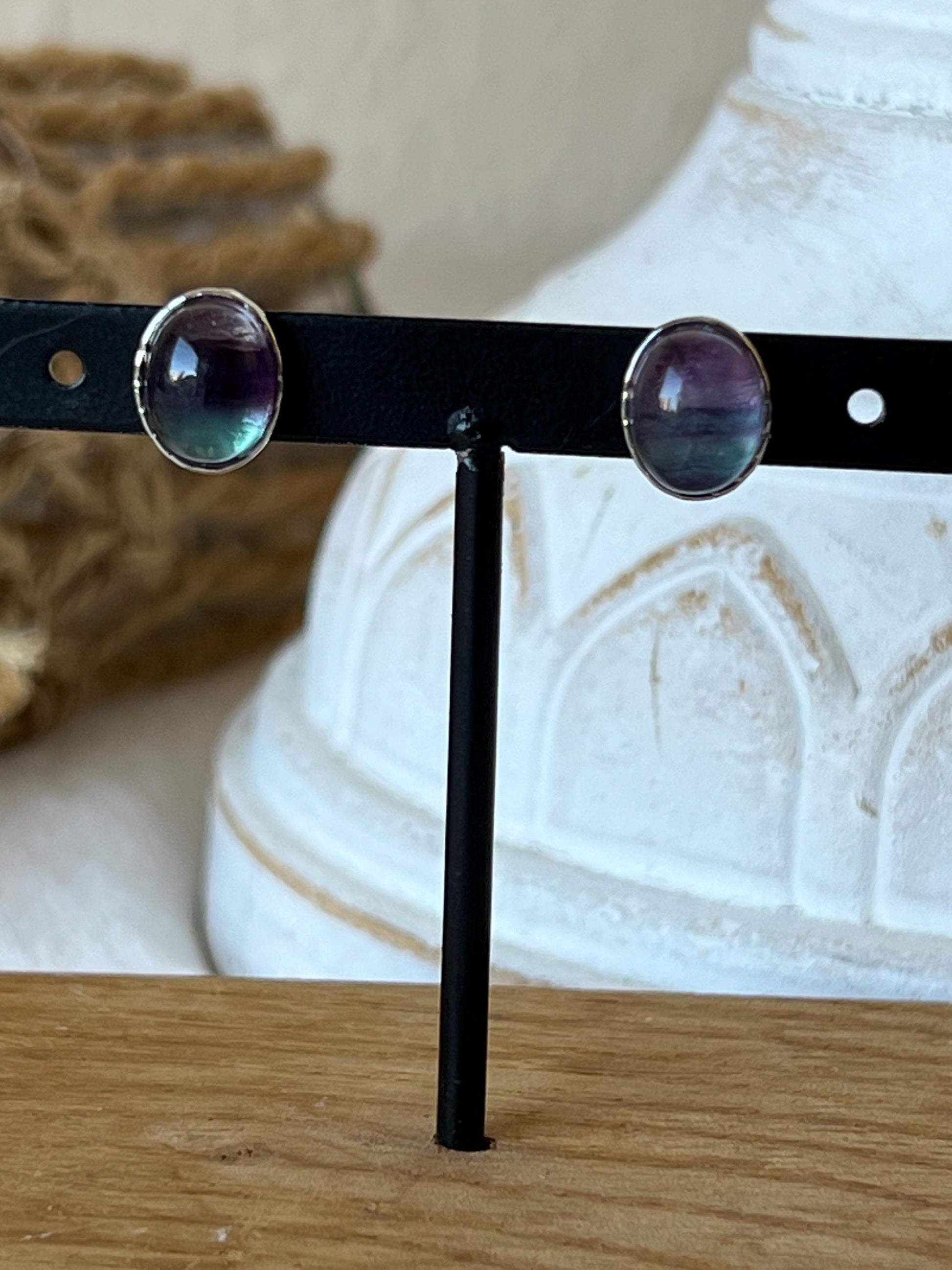 Fluorit Ohrstecker - Oval & farbenfroh, aus 925 Silber