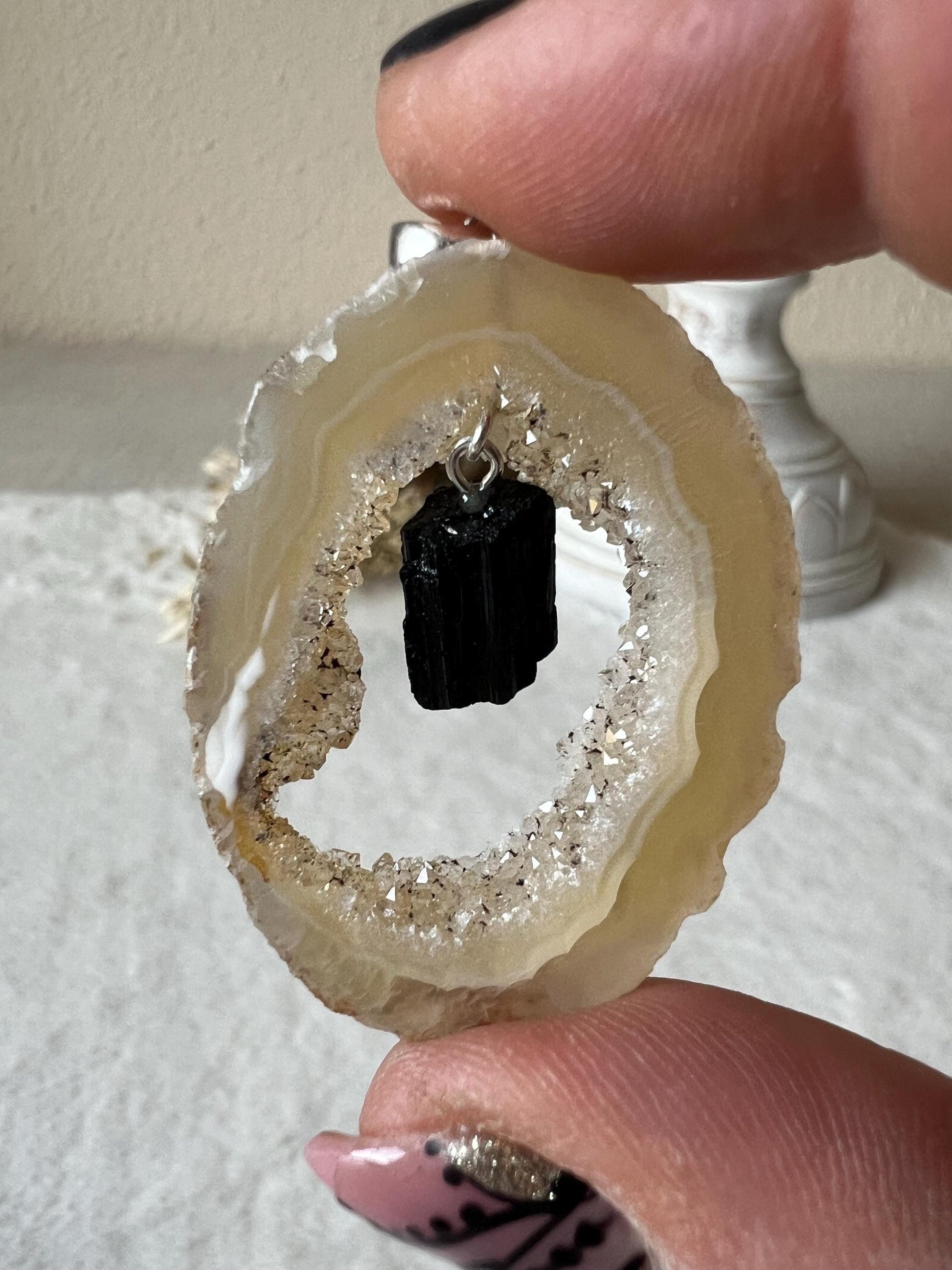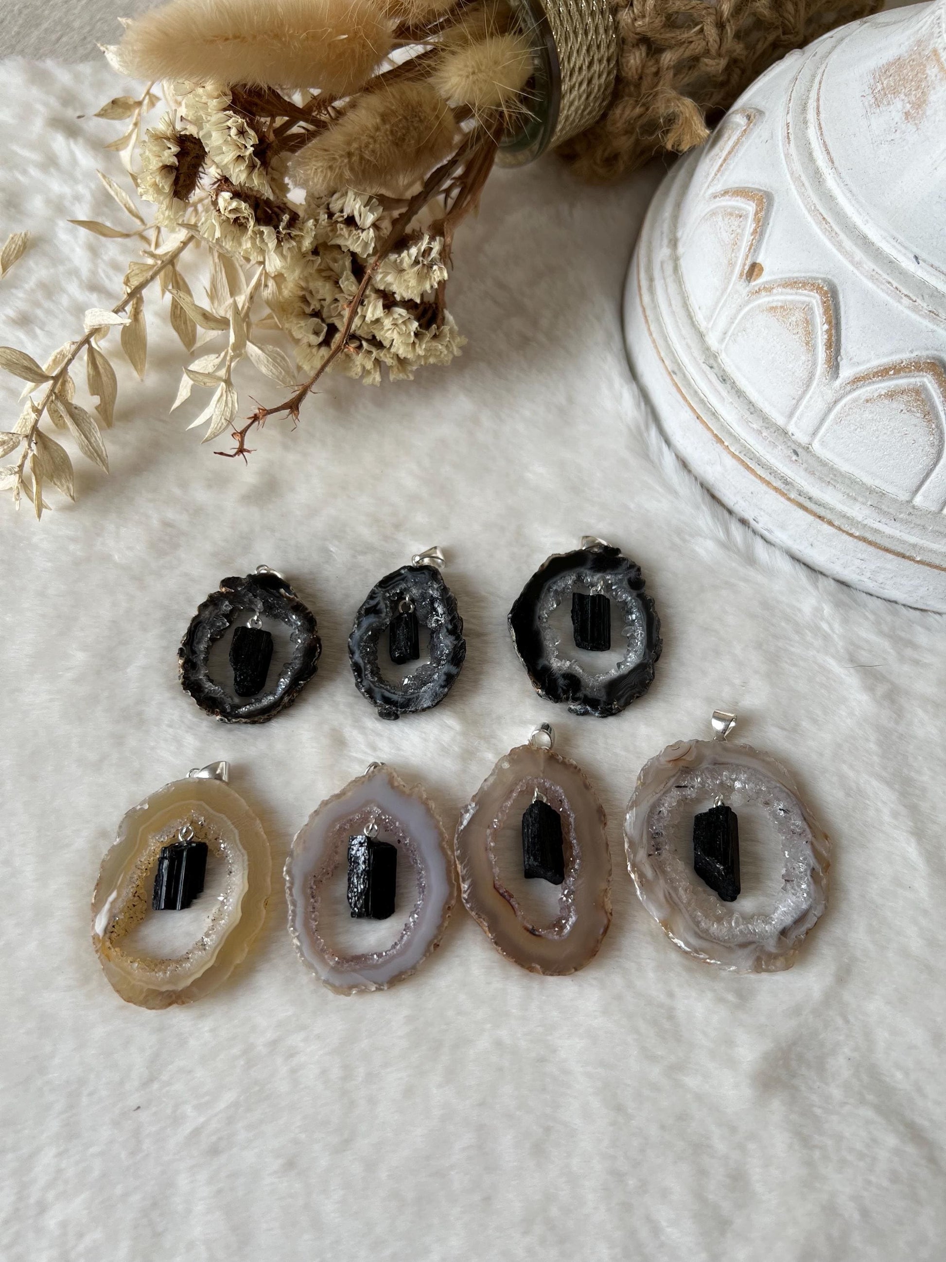 Achat-Geoden-Anhänger mit 925er Silberöse und schwarzem Turmalin: Ein Schmuckstück mit besonderer Energie