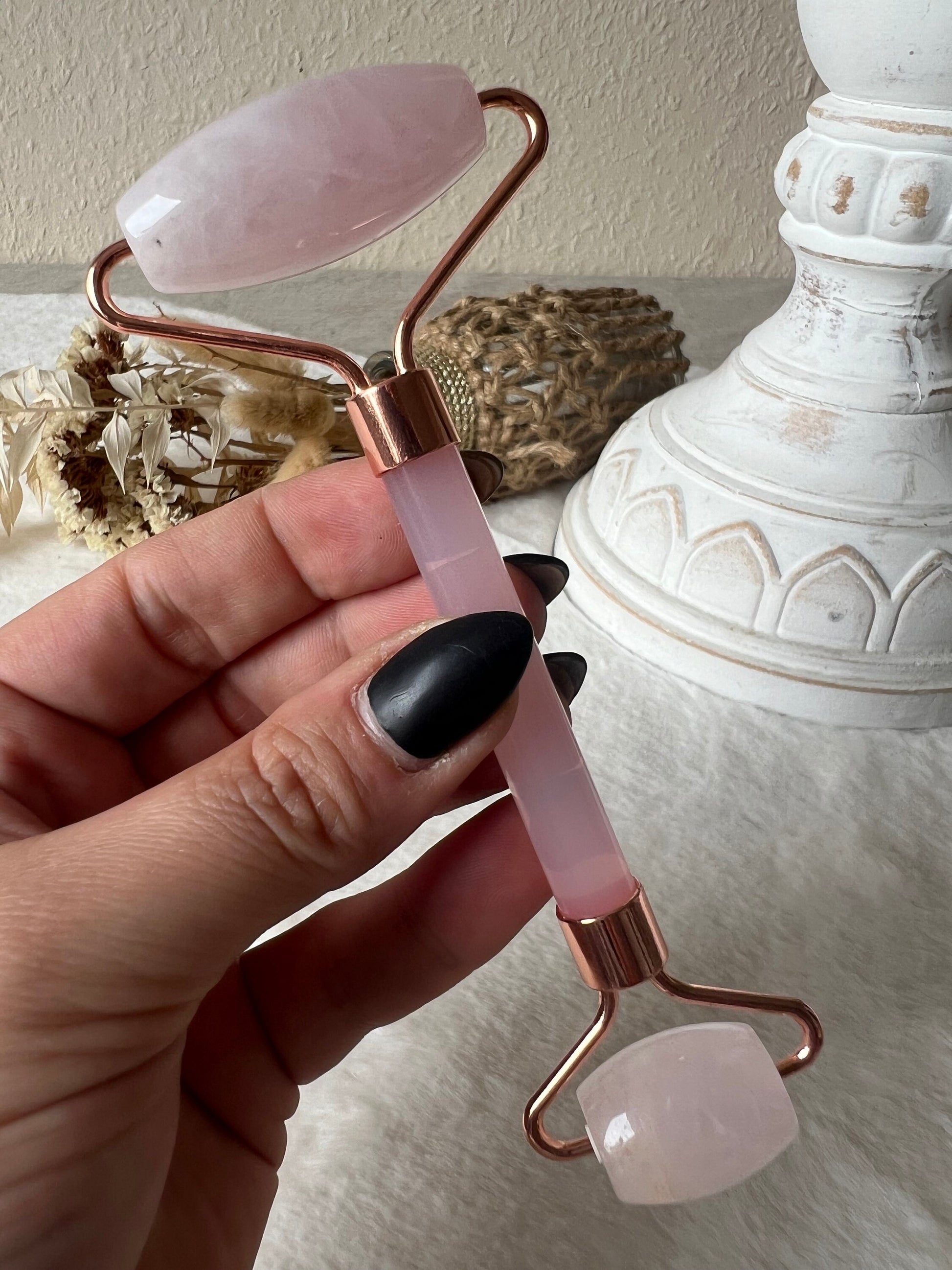 Rosenquarz-Gesichtsroller mit Kunststoff-Stil