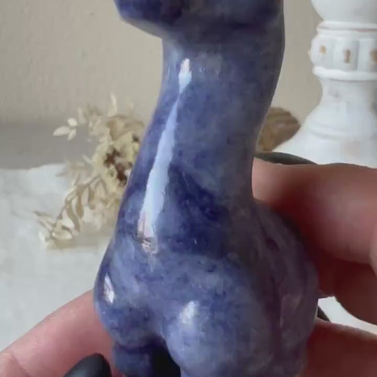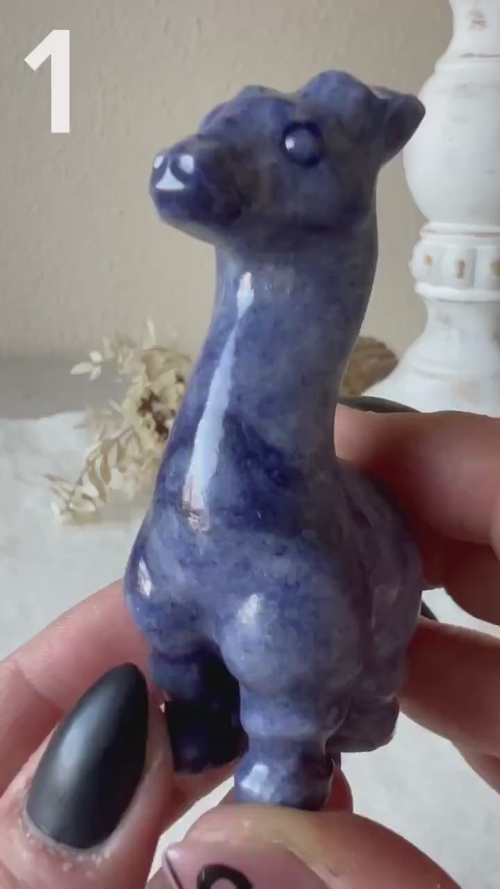 Die blauen Aventurin Giraffen Carvings verbinden die beruhigende Energie des blauen Aventurins mit der symbolischen Stärke der Giraffe. Blauer Aventurin ist ein Heilstein, dem nachgesagt wird, mentale Klarheit, innere Ruhe und Selbstdisziplin zu fördern. Er soll dabei helfen, negative Gedankenmuster aufzulösen und das dritte Auge zu öffnen, wodurch Intuition und innere Einsicht gestärkt werden.