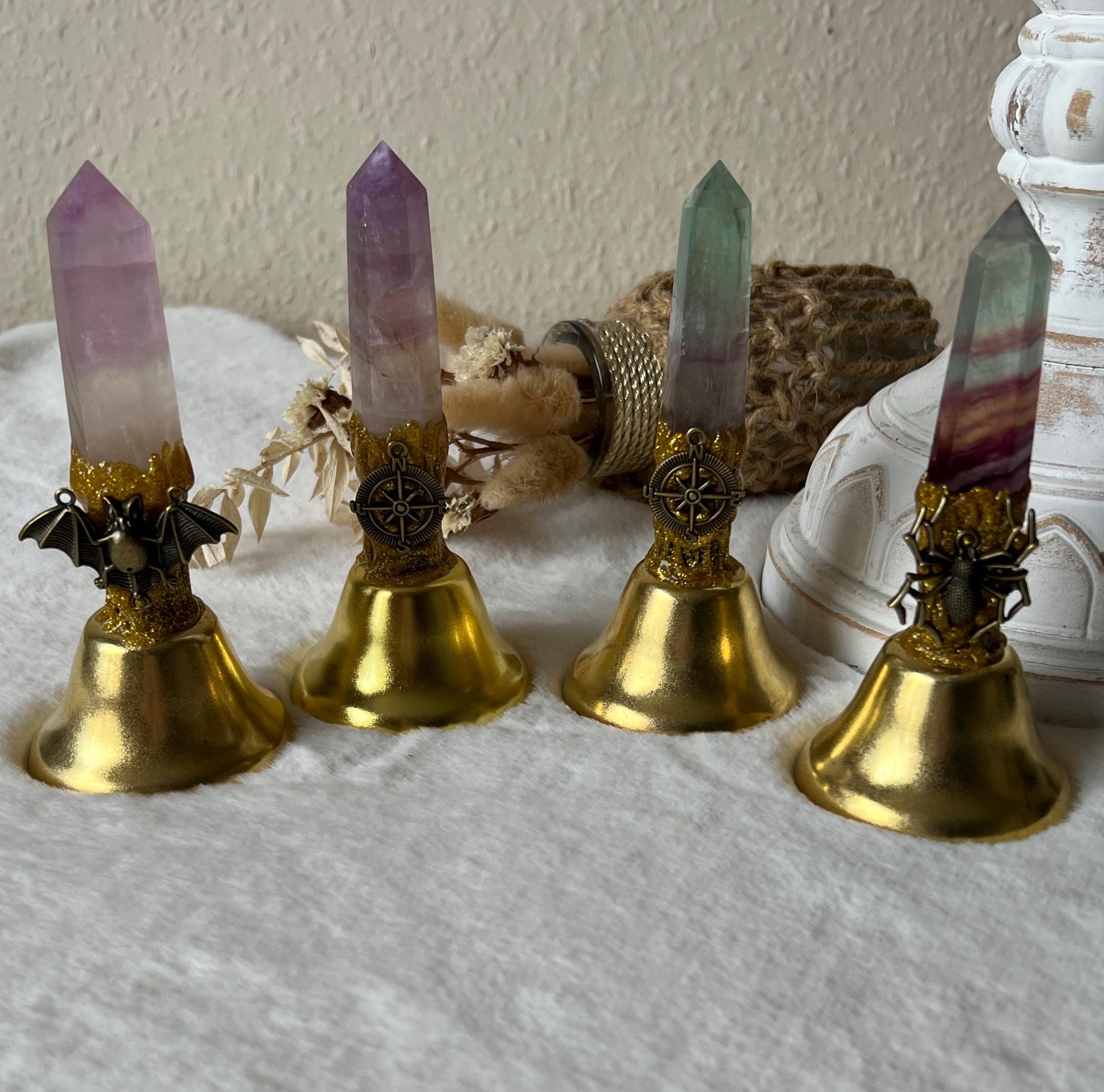 Diese handgefertigten Glocken kombinieren die reinigende und spirituelle Energie des Fluorit-Turms mit kraftvollen Symbolen, die für Schutz, Orientierung und Transformation stehen. Jede Glocke wird von einem einzigartigen Symbol begleitet und ist ein wundervolles Werkzeug für Rituale, Meditation oder als besondere Dekoration.