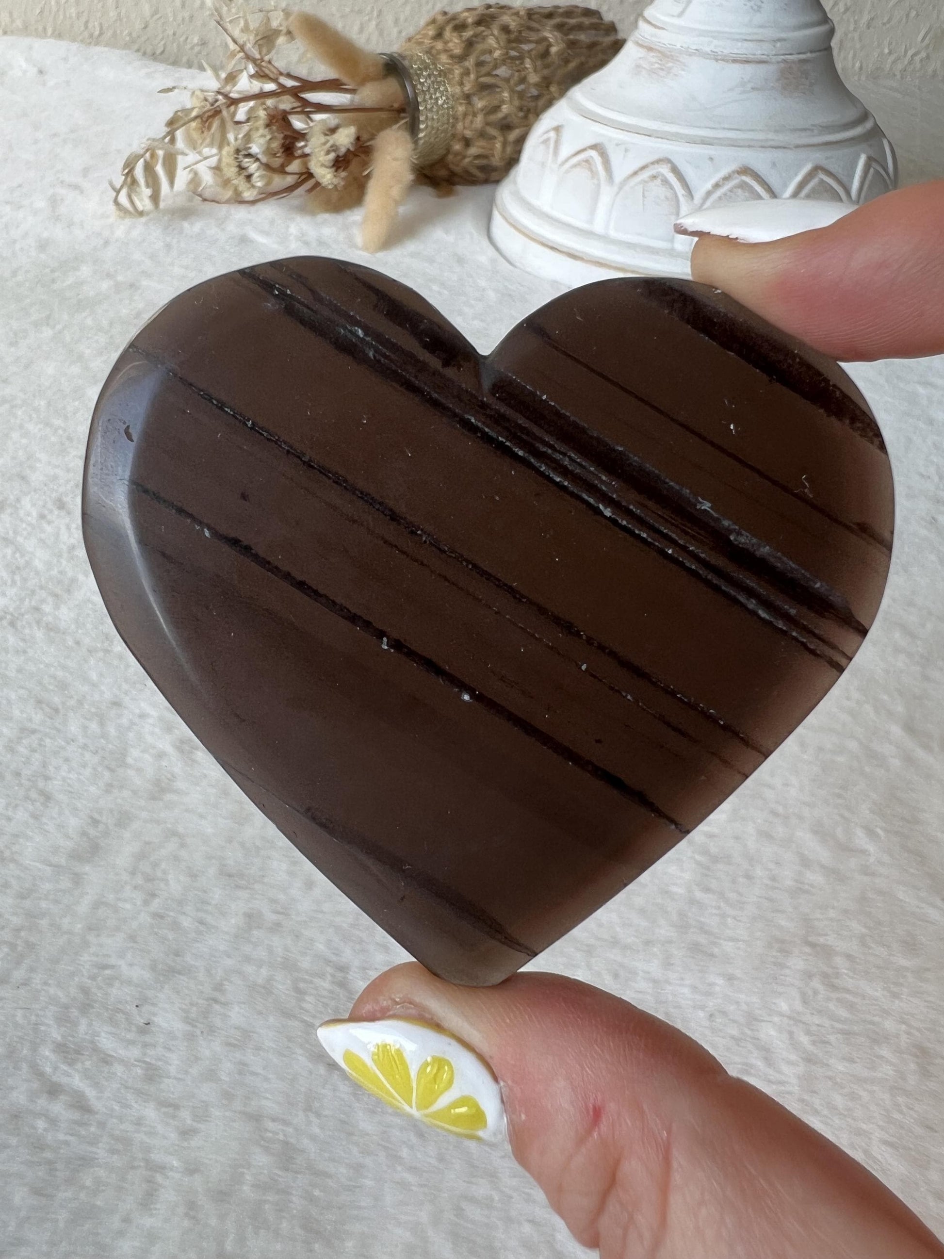 Die Herzform verstärkt die Verbindung zum Herzchakra und macht die Obsidian Herzen zu wundervollen Begleitern für Meditation, Herzensarbeit oder als schützende Kraftsteine im Alltag.