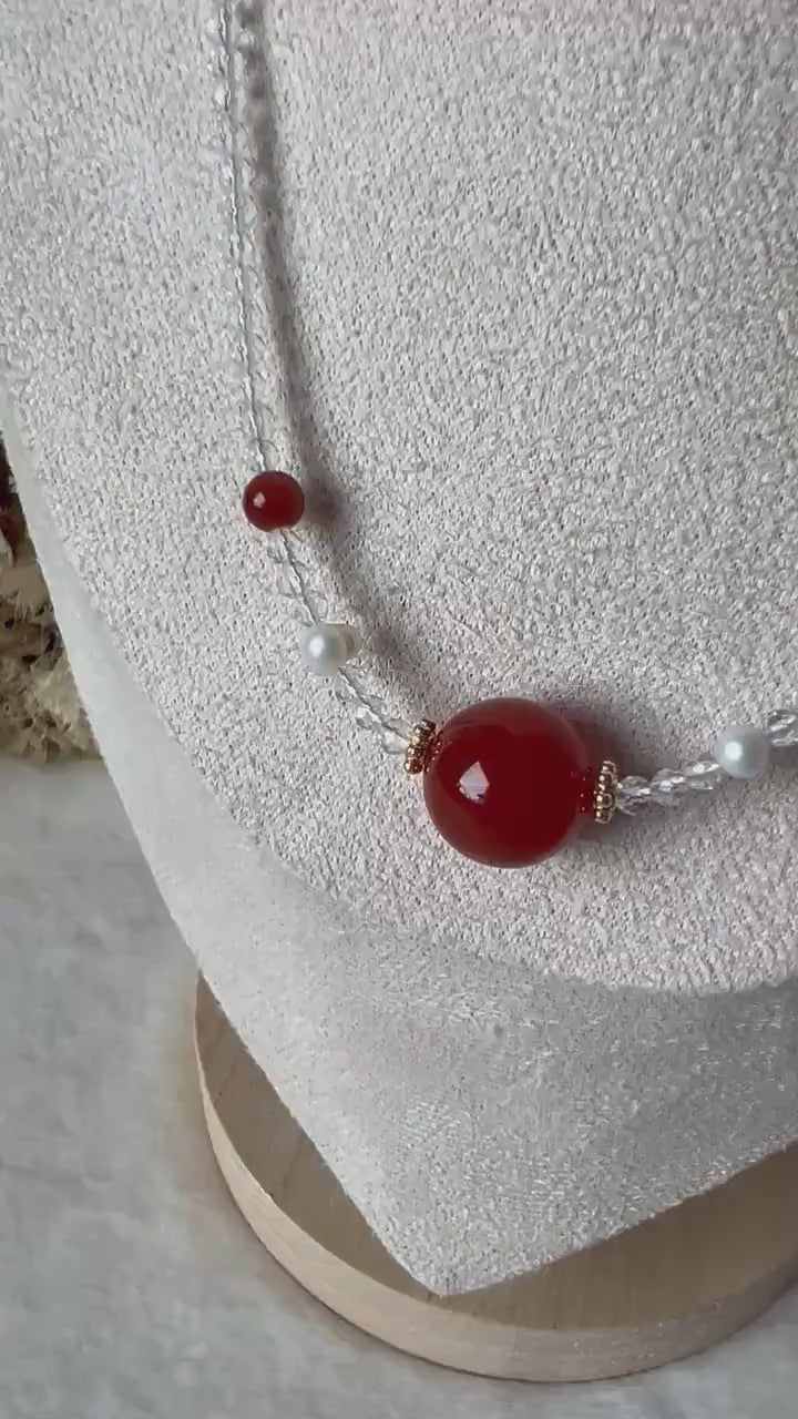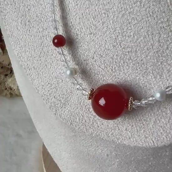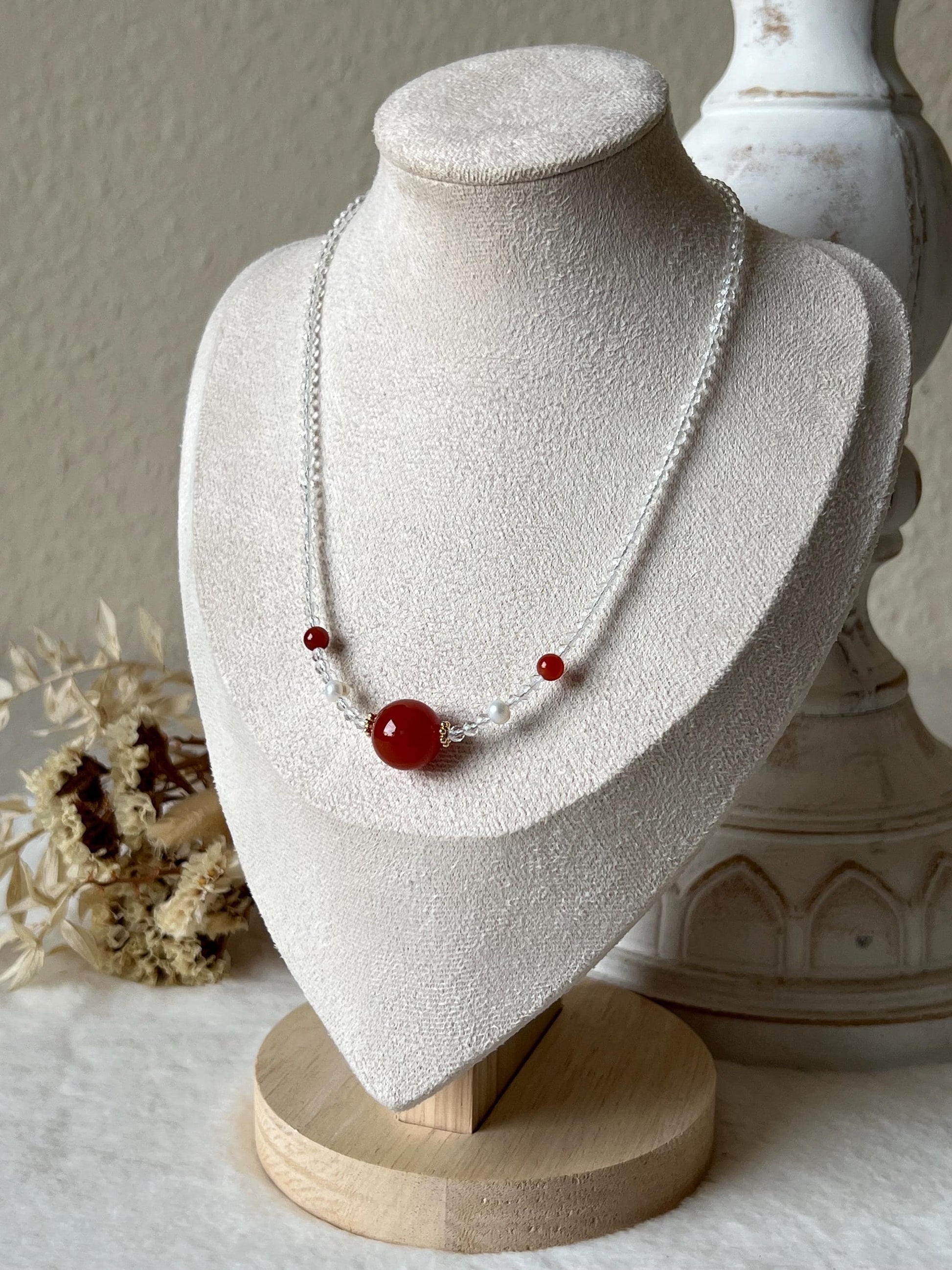 Karneol und Bergkristall Kette 925 Silber Verschluss