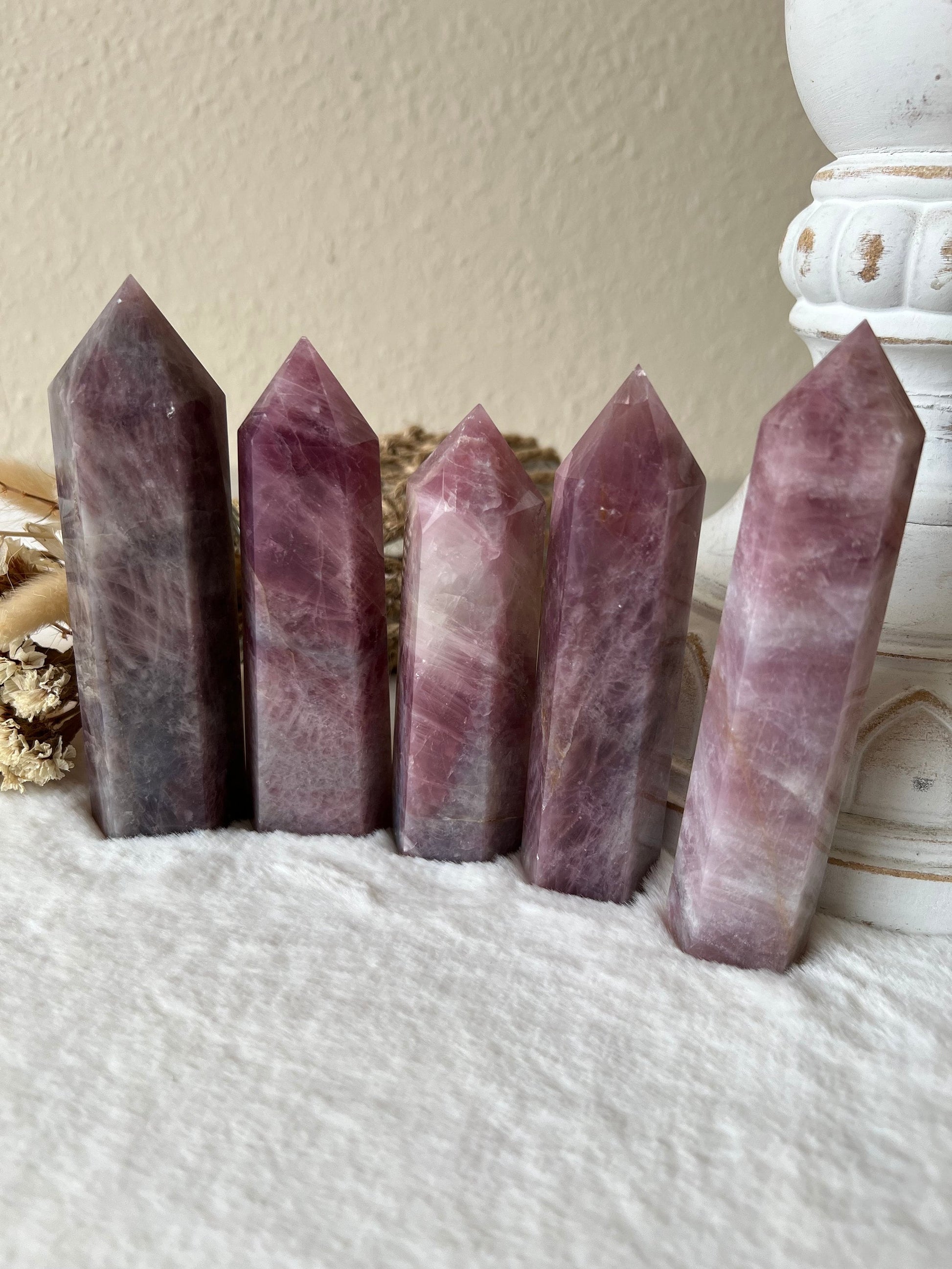 Die Lavendel Rosenquarz Türme vereinen die beruhigenden Eigenschaften von Lavendel mit der liebevollen Energie des Rosenquarzes, um eine einzigartige Kombination der Heilung und des Ausgleichs zu schaffen. Diese faszinierenden Türme strahlen eine sanfte Aura aus und werden für ihre tiefgreifenden heilenden Wirkungen geschätzt.