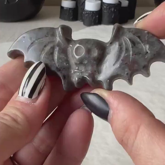 Diese Mini-Fledermaus-Carvings aus Yooperlite und Selenit sind kraftvolle spirituelle Begleiter, die Schutz, Transformation und Heilung symbolisieren. Beide Steine haben ihre ganz eigenen, faszinierenden Eigenschaften und verleihen den Fledermäusen eine besondere energetische Bedeutung.