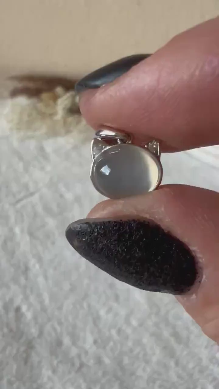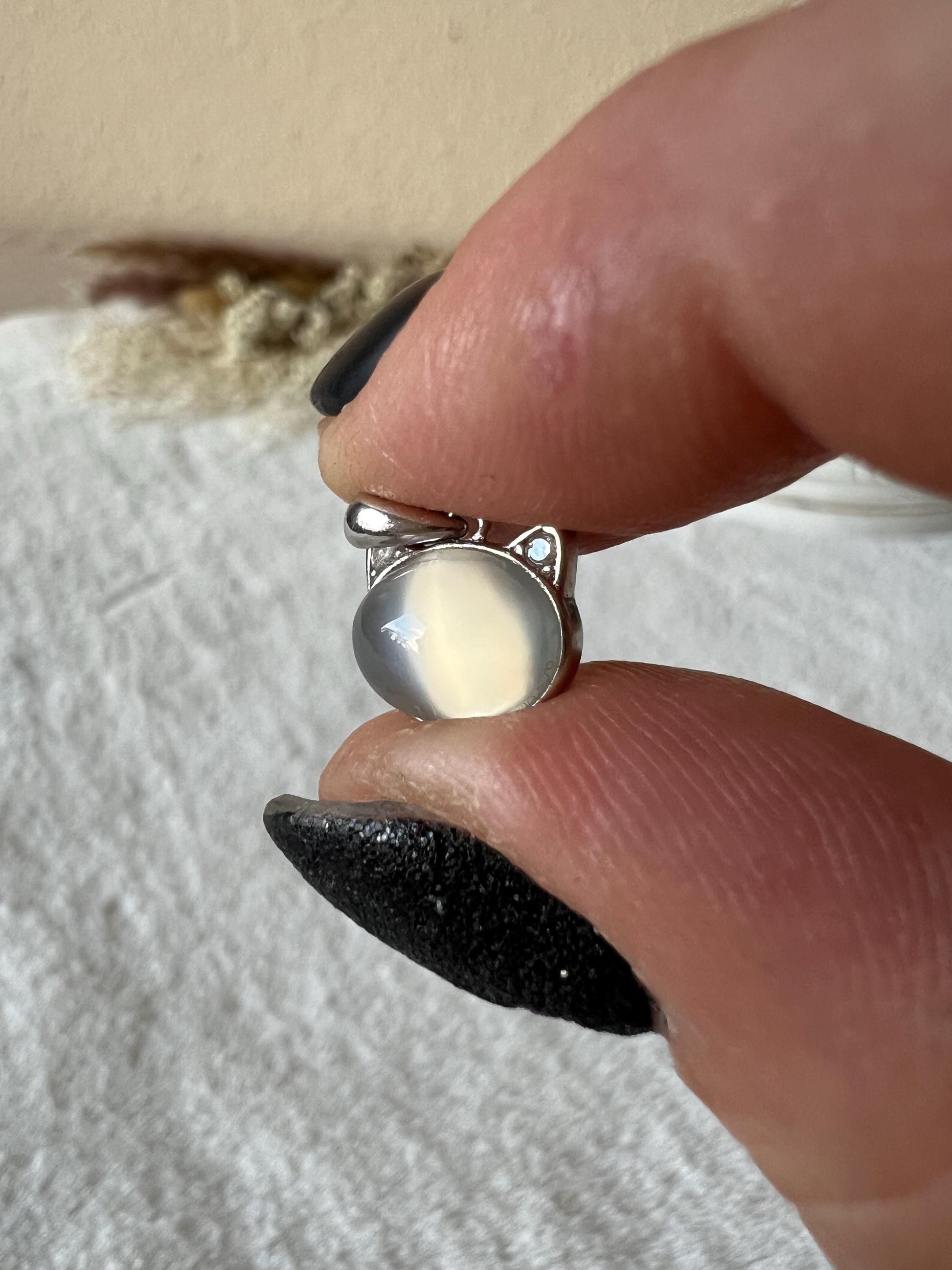 Die runde Mondstein-Cabochonfassung bildet das Gesicht, während zwei kleine silberne Öhrchen dem Anhänger sein zart-verspieltes Design geben - perfekt für alle, die Katzen lieben oder Schmuck mit einer süßen, symbolischen Note bevorzugen.