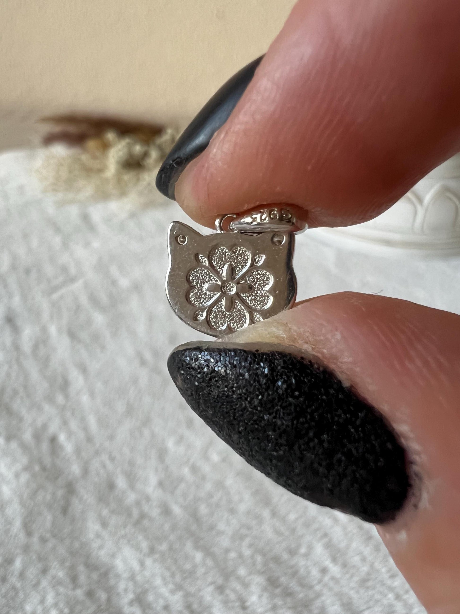 Dieser besondere Anhänger besteht aus echtem 925 Silber und einem sanft schimmernden Mondstein, eingefasst in einer liebevoll gearbeiteten Katzenkopf-Form.