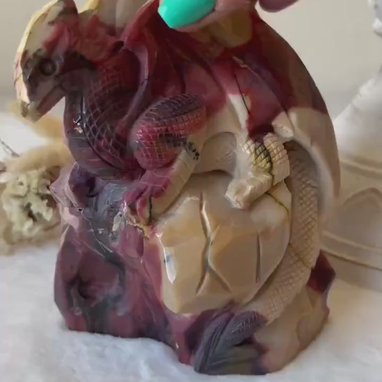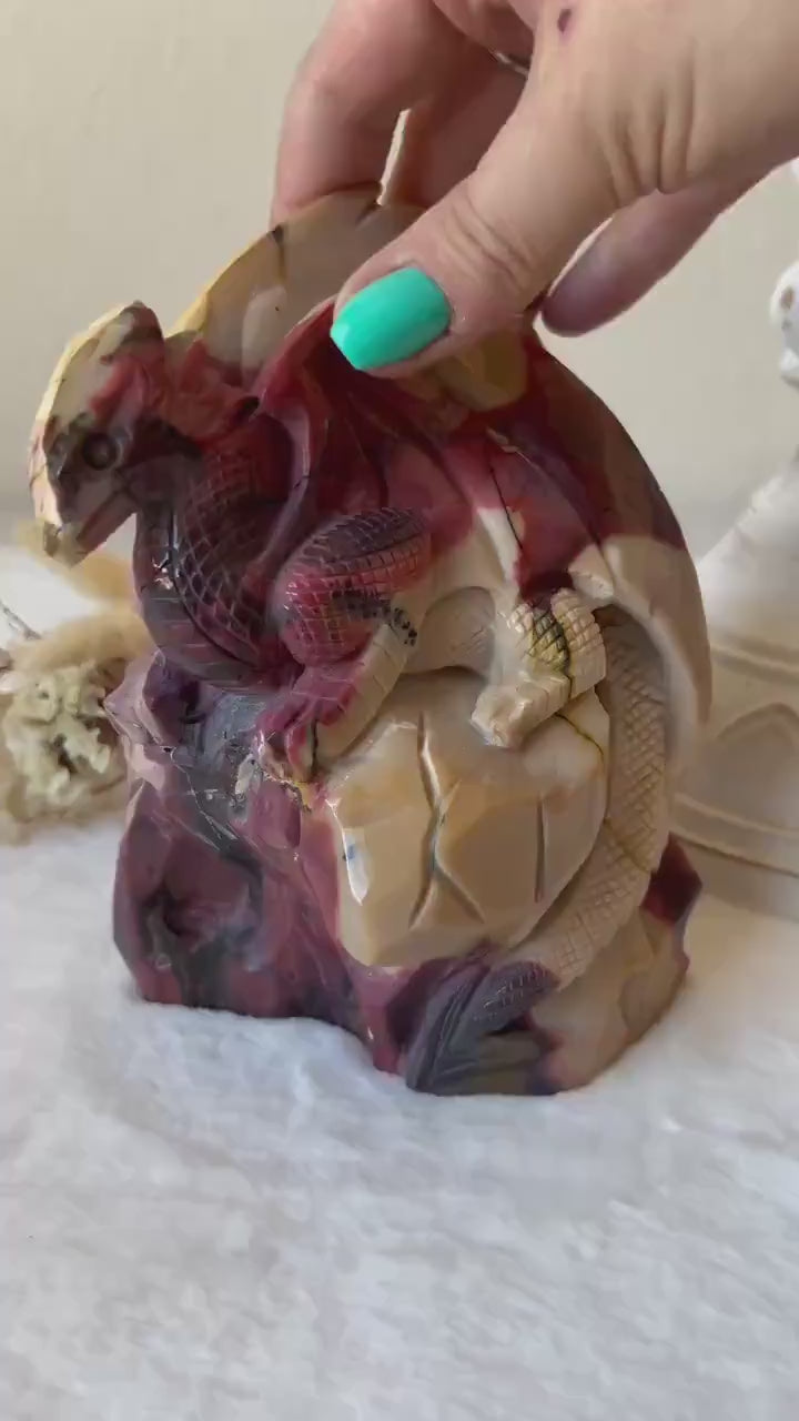 Mookait Drachen-Carving auf Turm - Urkraft, Schutz & Wandel