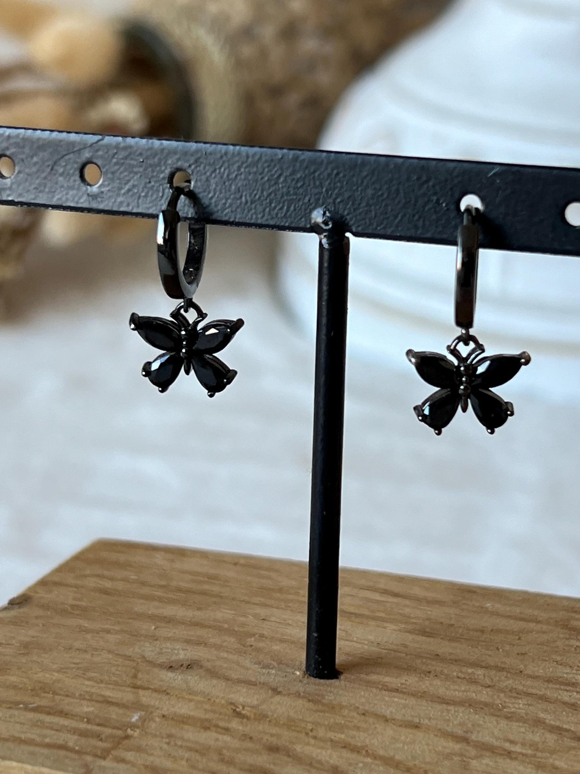 Obsidian Schmetterling Ohrringe schwarz 925 Silber