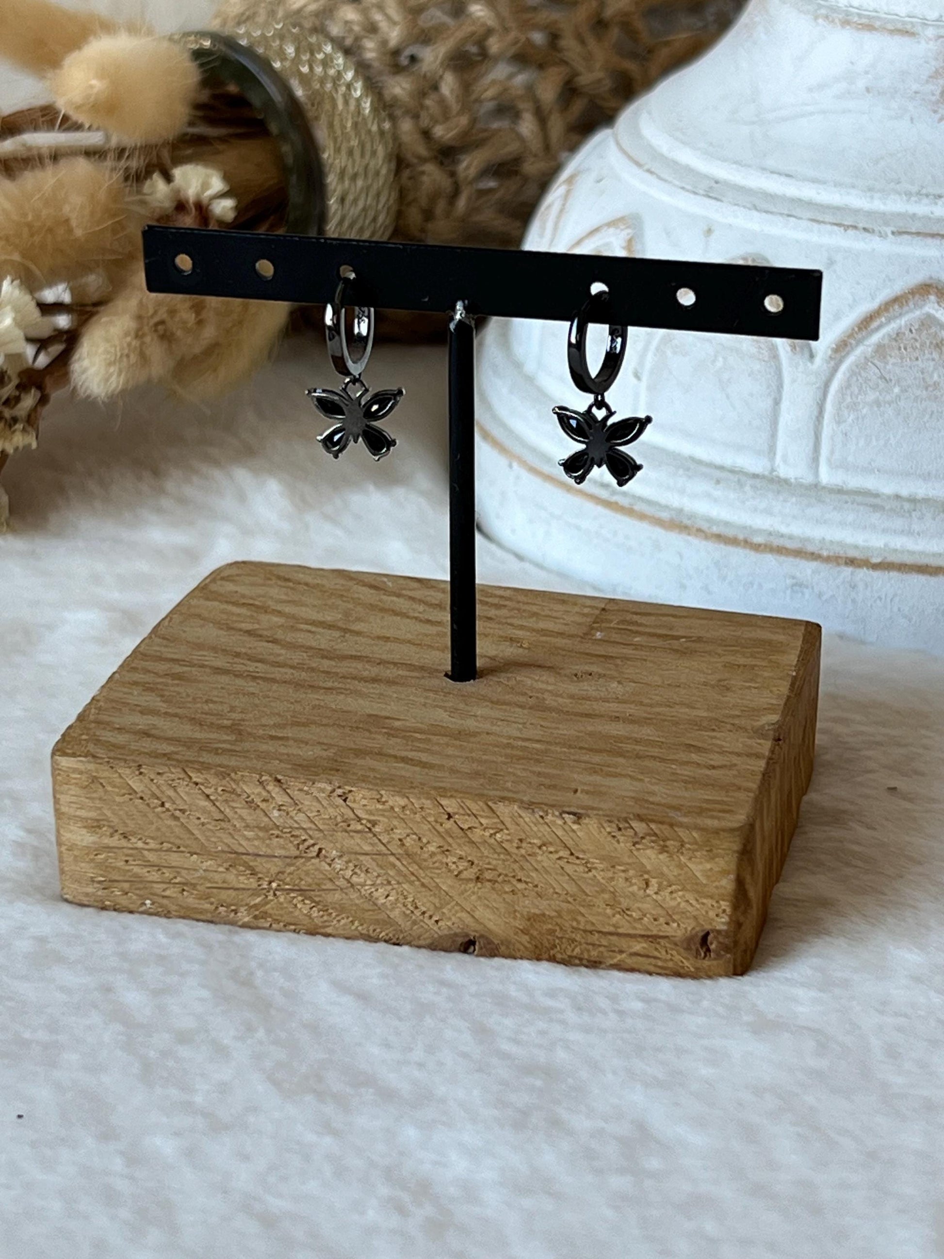 Diese eleganten Ohrringe aus schwarzem 925 Sterling Silber präsentieren einen kunstvoll gestalteten Schmetterling, dessen Flügel aus tiefschwarzem Obsidian bestehen. Der Schmetterling symbolisiert Leichtigkeit und Transformation, während der Obsidian als Schutzstein gilt. Ihm wird nachgesagt, negative Energien abzuleiten und Klarheit sowie innere Stärke zu fördern. Der Obsidian verleiht diesen Ohrringen nicht nur eine mystische Ausstrahlung, sondern steht auch für Schutz und emotionale Balance. Die hochwertigen Materialien und das stilvolle Design machen diese Ohrringe zu einem besonderen Accessoire, das Eleganz mit spiritueller Bedeutung vereint. Ideal für besondere Anlässe oder als täglicher Begleiter.