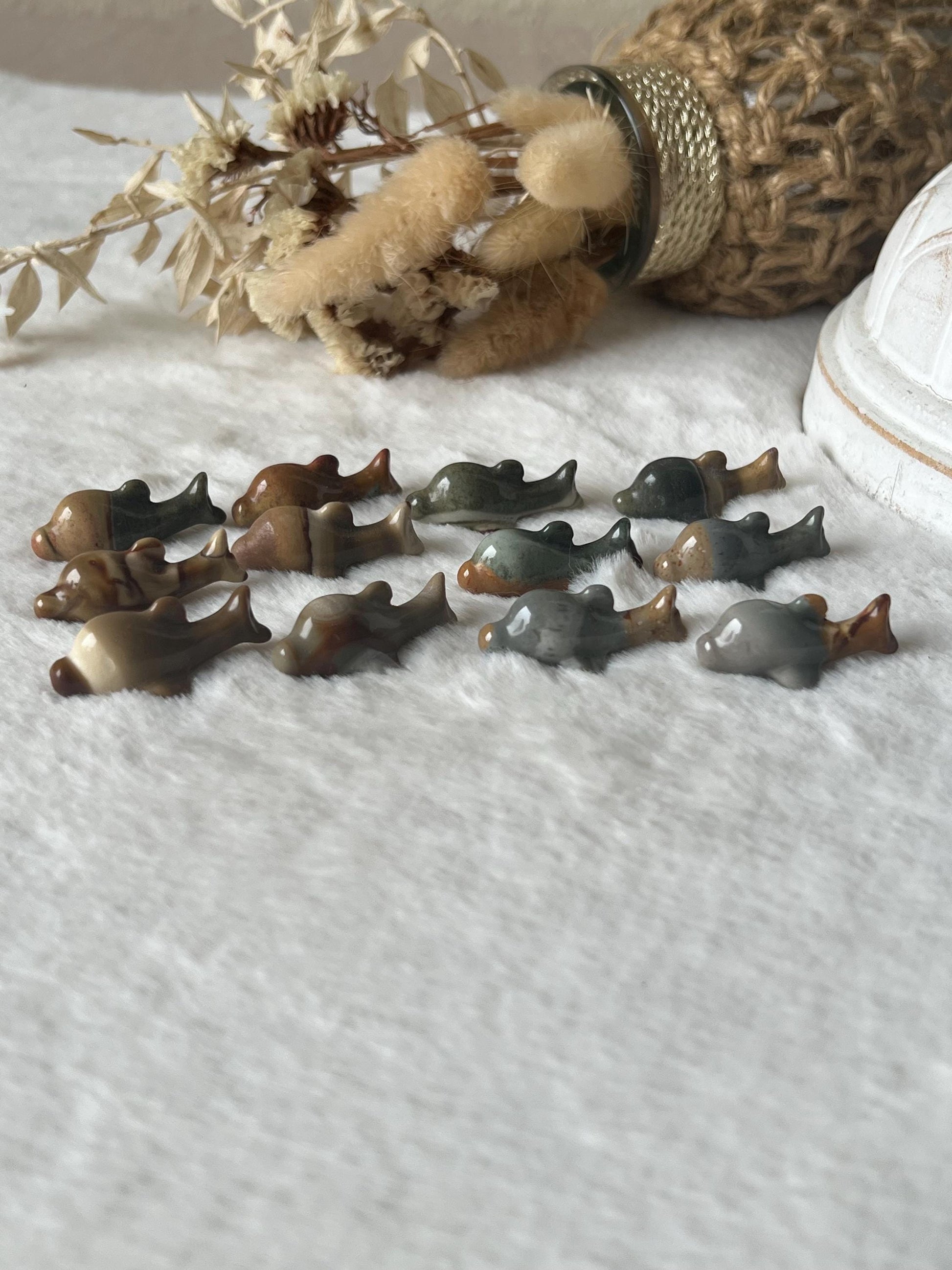 Diese wunderschönen, handgefertigten Polychrom-Jaspis-Fische sind kleine Kraftsteine voller natürlicher Energie. Jeder Fisch ist einzigartig in seinen Farbverläufen - von sanften, helleren Erdtönen bis hin zu dunkleren, tiefen Farbschattierungen. Polychrom-Jaspis ist bekannt als Stein der Balance, Erdung und inneren Stärke, der sowohl Ruhe als auch neue Energie bringt.