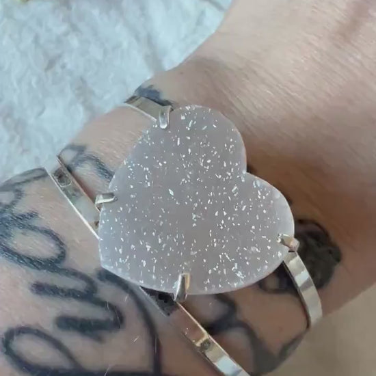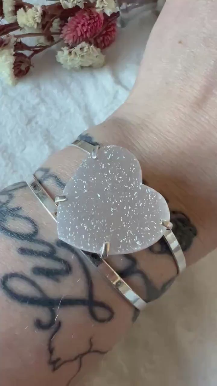 Dieser elegante, silber galvanisierte Armreif mit einem liebevoll eingefassten Rosa Amethyst-Herz ist mehr als nur ein Schmuckstück - er ist ein kraftvolles Symbol für Selbstliebe, emotionale Heilung und innere Harmonie. Die sanfte rosafarbene Schwingung des Amethysts vereint sich mit der Klarheit und Reinheit des Silbers zu einem wundervollen Begleiter für Herz und Seele.