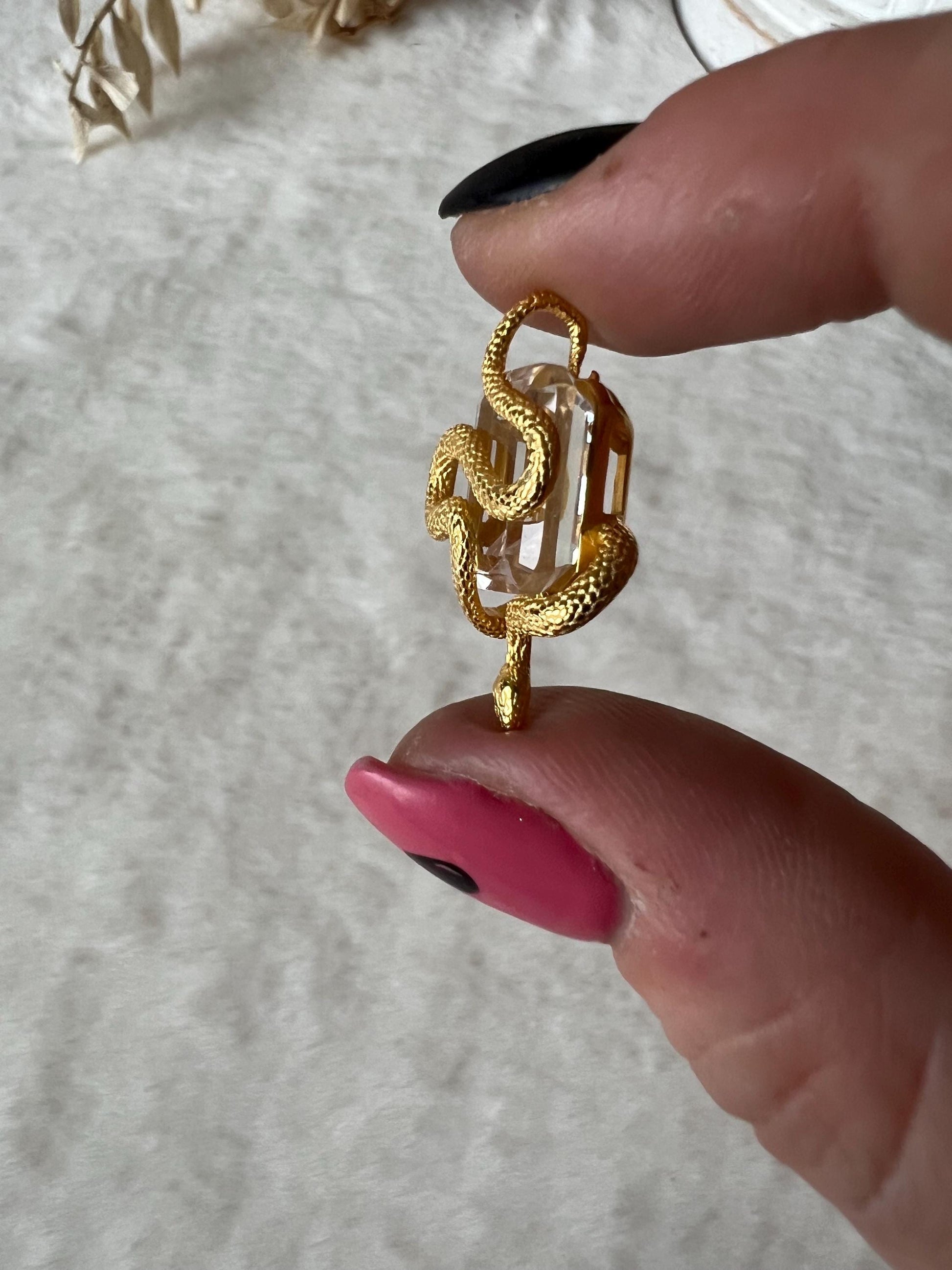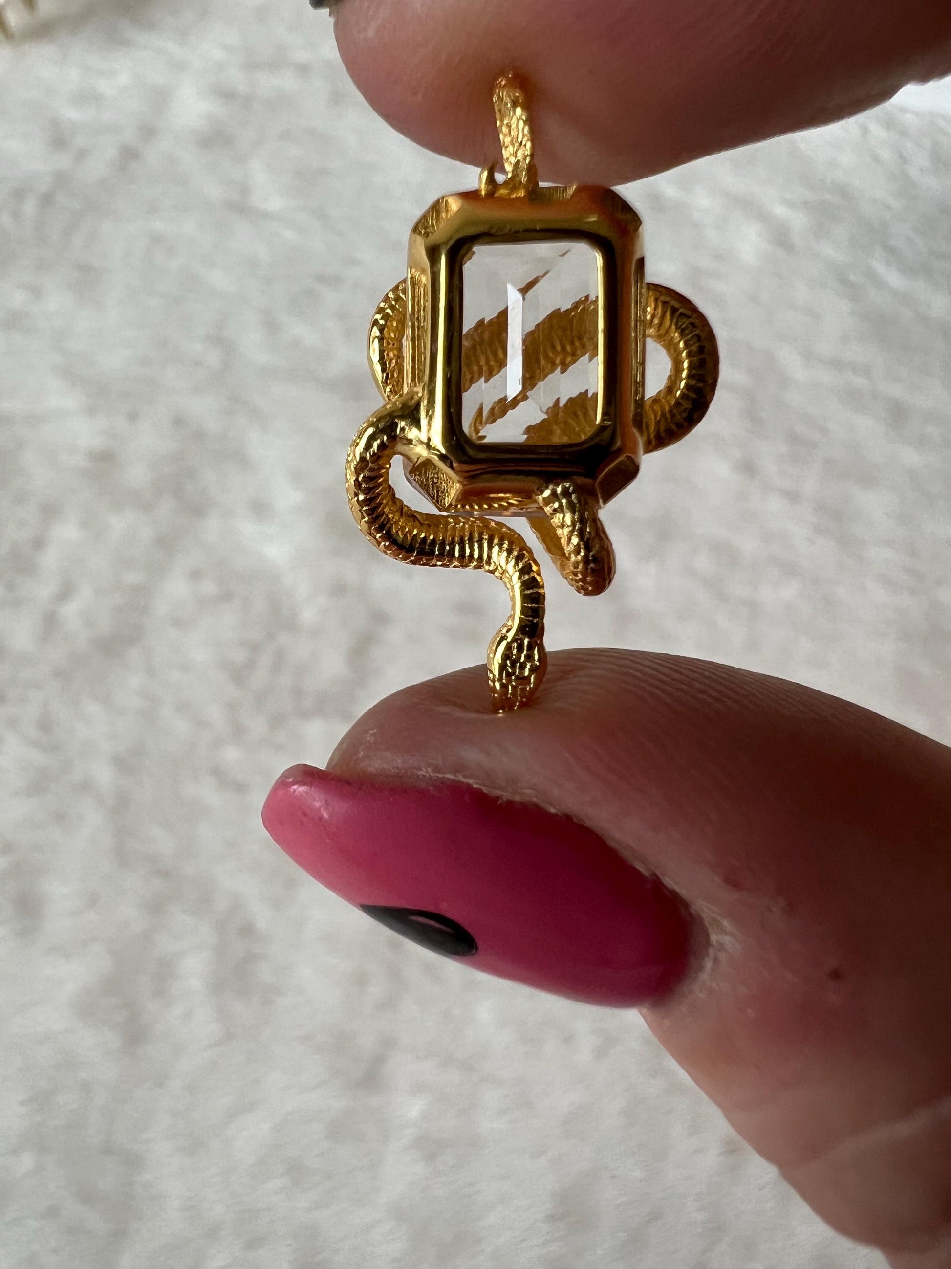 Dieser 925 Silber 18K vergoldete Schlangen-Anhänger mit facettiertem Bergkristall vereint die Weisheit der Schlange mit der reinen Energie des Bergkristalls. Ein kraftvoller Begleiter für innere Stärke, Schutz & Transformation. ✨🐍💎