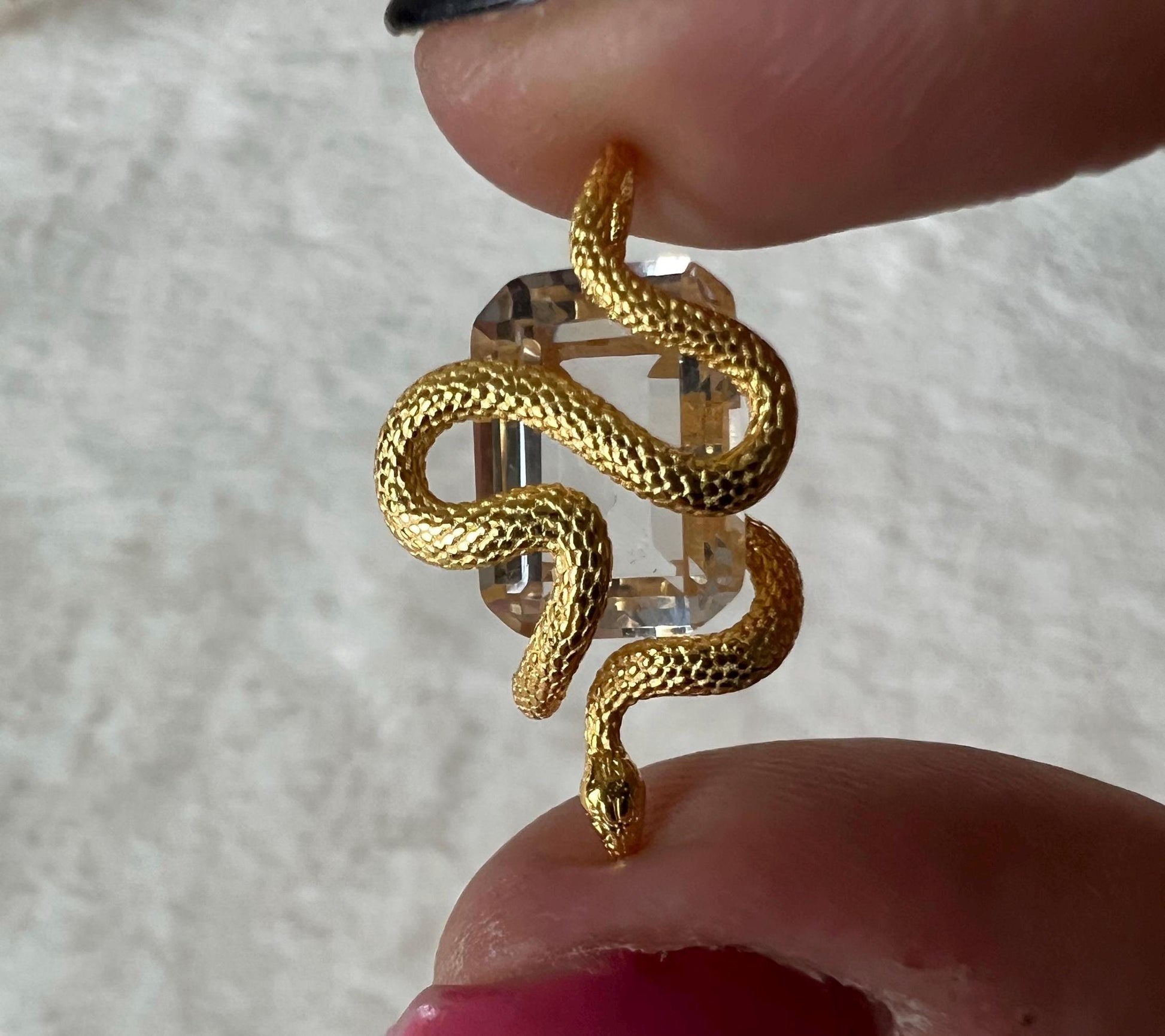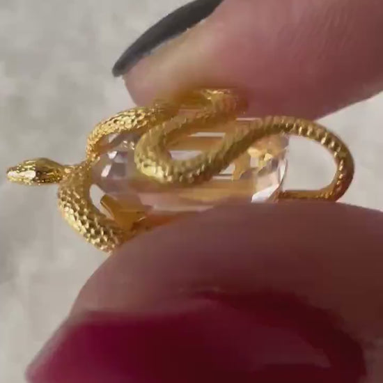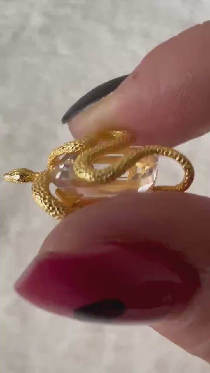 925 Silber 18K vergoldeter Schlangen-Anhänger mit facettiertem Bergkristall - Weisheit, Schutz & Klarheit ✨🐍💎
