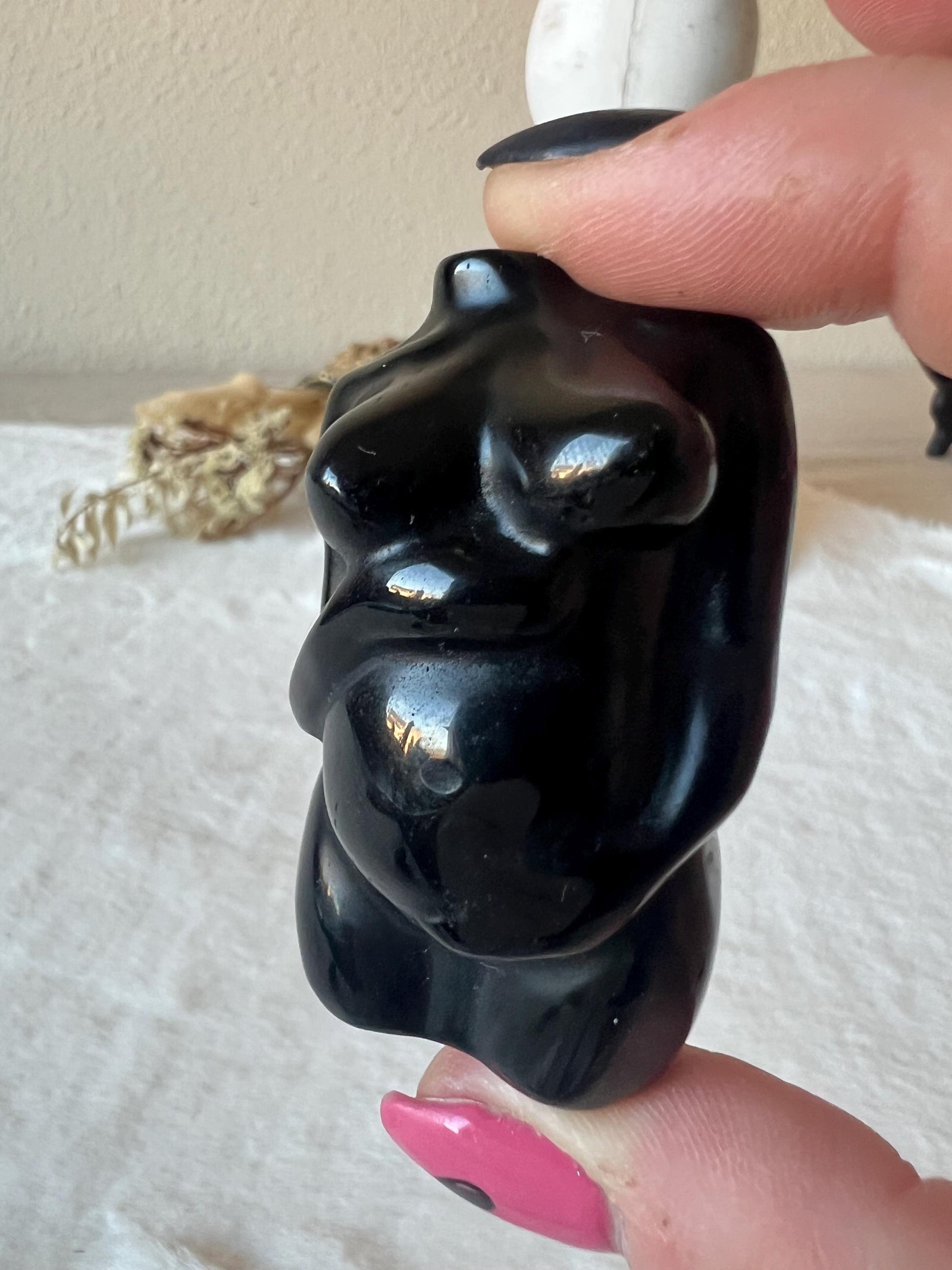 Die Figur eines schwangeren Frauenkörpers aus Obsidian kann als kraftvolles Symbol der Mutter-Kind-Bindung dienen. Sie erinnert an die natürliche Stärke des weiblichen Körpers und unterstützt das Vertrauen in die eigene Intuition.