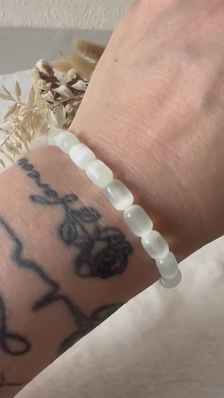 Daher ist es ratsam, Selenit-Schmuckstücke wie Armbänder, Anhänger oder andere Dekorationsstücke nicht beim Schwimmen, Duschen oder Händewaschen zu tragen, um sie vor Wasser zu schützen. Wenn das Selenit-Schmuckstück versehentlich mit Wasser in Kontakt kommt, sollte es sofort vorsichtig getrocknet werden, um mögliche Schäden zu minimieren.
