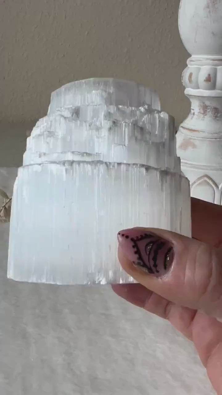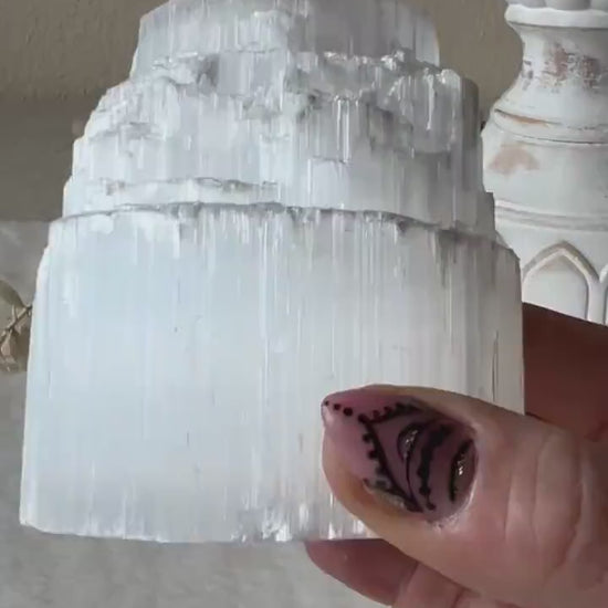 Selenit, auch als "Engelsstein" bekannt, zeichnet sich durch seine milchig-weiße bis transparente Erscheinung aus, die häufig an Eis oder Mondlicht erinnert. Seine edle und schlichte Optik passt in jeden Wohnstil und bringt eine ruhige, harmonische Note in jedes Zuhause. Ob auf dem Nachttisch, im Wohnzimmer oder als Highlight auf dem Esstisch - ein Selenit-Teelichthalter schafft eine entspannte und friedliche Atmosphäre.