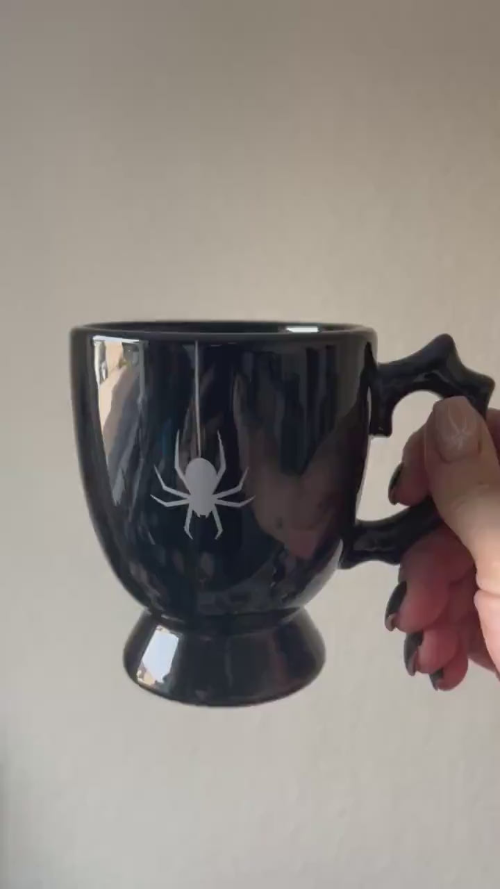 Der aufwendig gestaltete, dornige schwarze Griff verleiht der Tasse eine kantige Raffinesse und ruft ein Gefühl von Geheimnis und Intrigen hervor. Kombiniert mit dem mutigen, gedruckten Spinnen-Design wird jede Tasse Tee zu einem gotischen Genuss, der sowohl auffällt als auch begeistert.