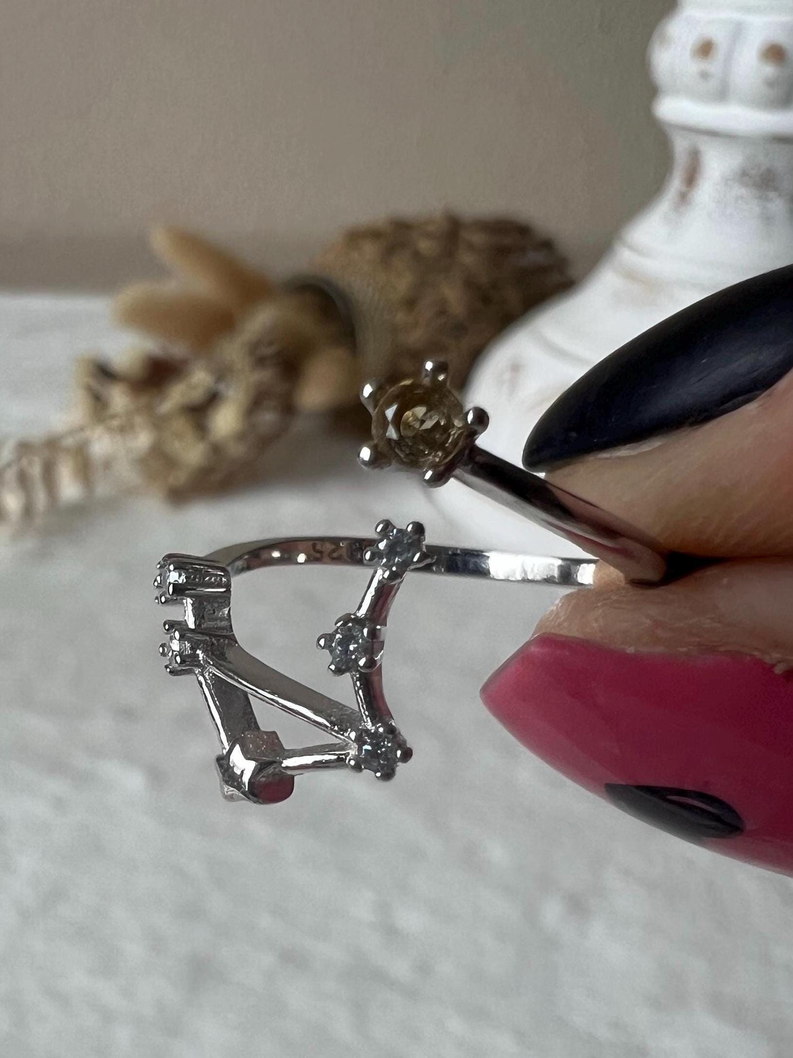 Sternzeichen Waage Citrin Ring 925 Silbr