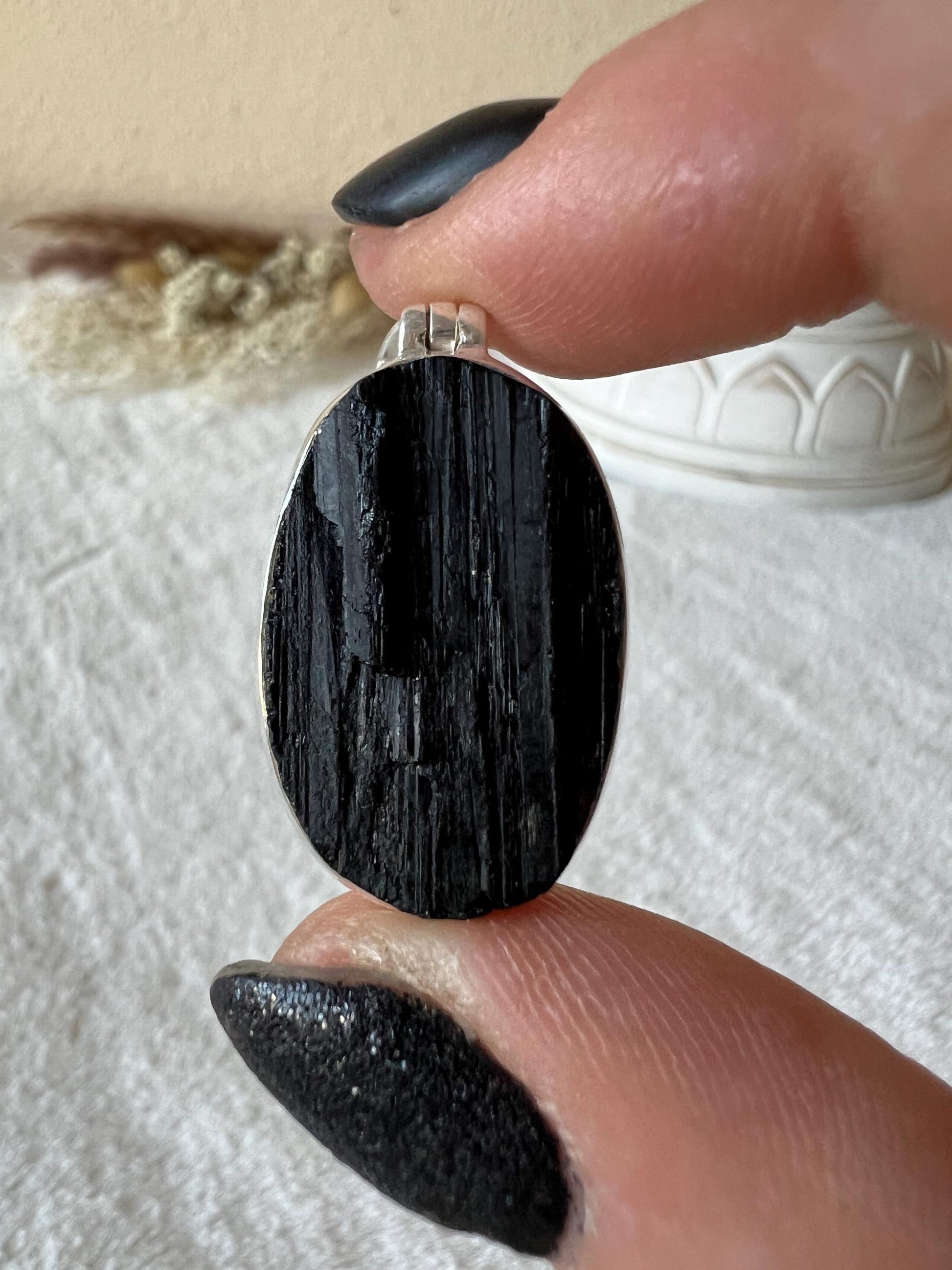 Jedes Stück ist ein Unikat und vereint die schützende, reinigende und ausgleichende Energie des Turmalins mit einer zeitlosen, edlen Silbereinfassung.