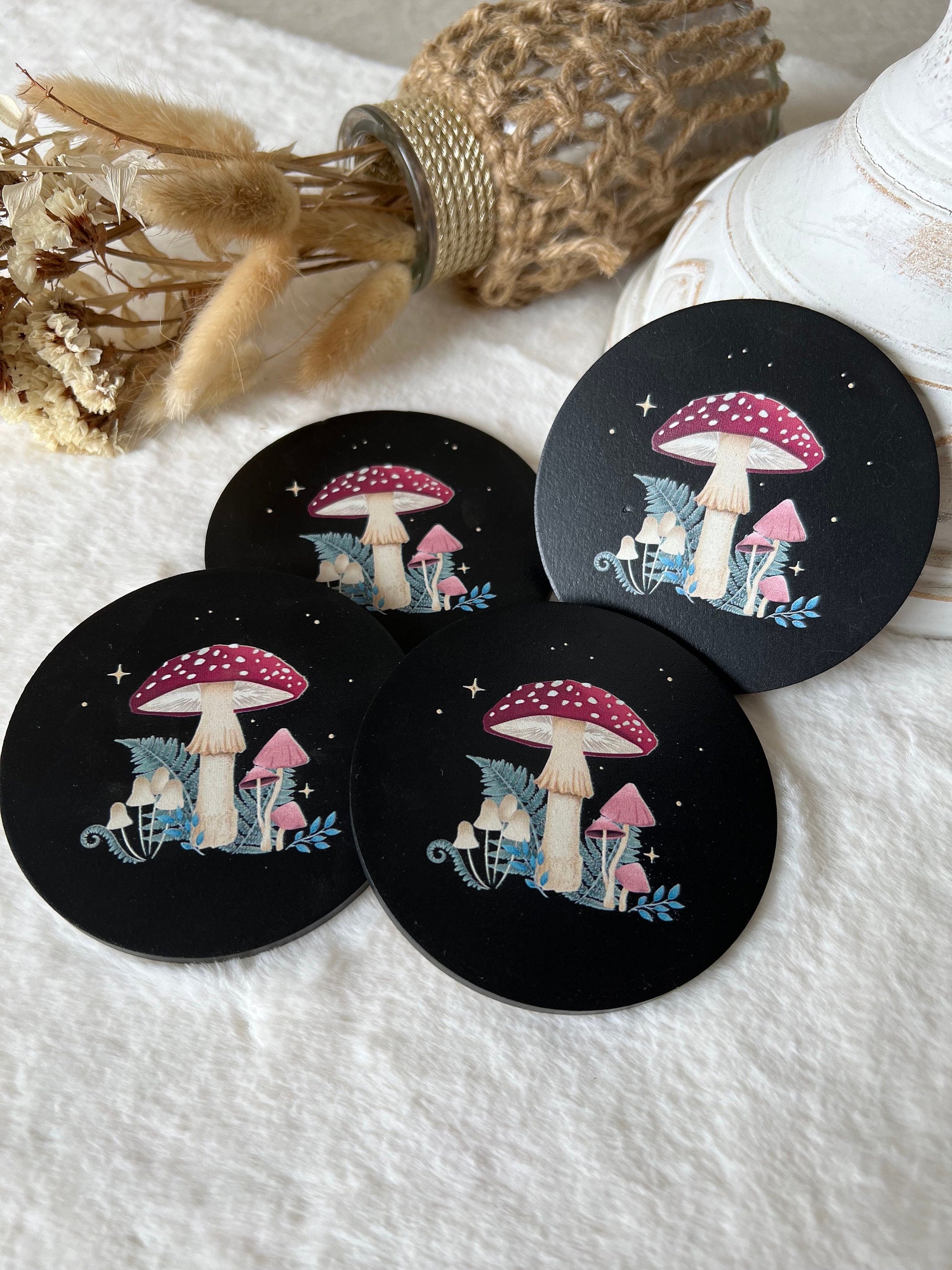 Holzuntersetzer mit Pilzen und Sternen sind charmante und funktionale Accessoires, die in jedem Haushalt sowohl ästhetisch als auch praktisch überzeugen. Diese handgefertigten Untersetzer verbinden die Schönheit der Natur mit einem Hauch von Mystik und sind ideal, um Oberflächen vor Hitze und Feuchtigkeit zu schützen.
