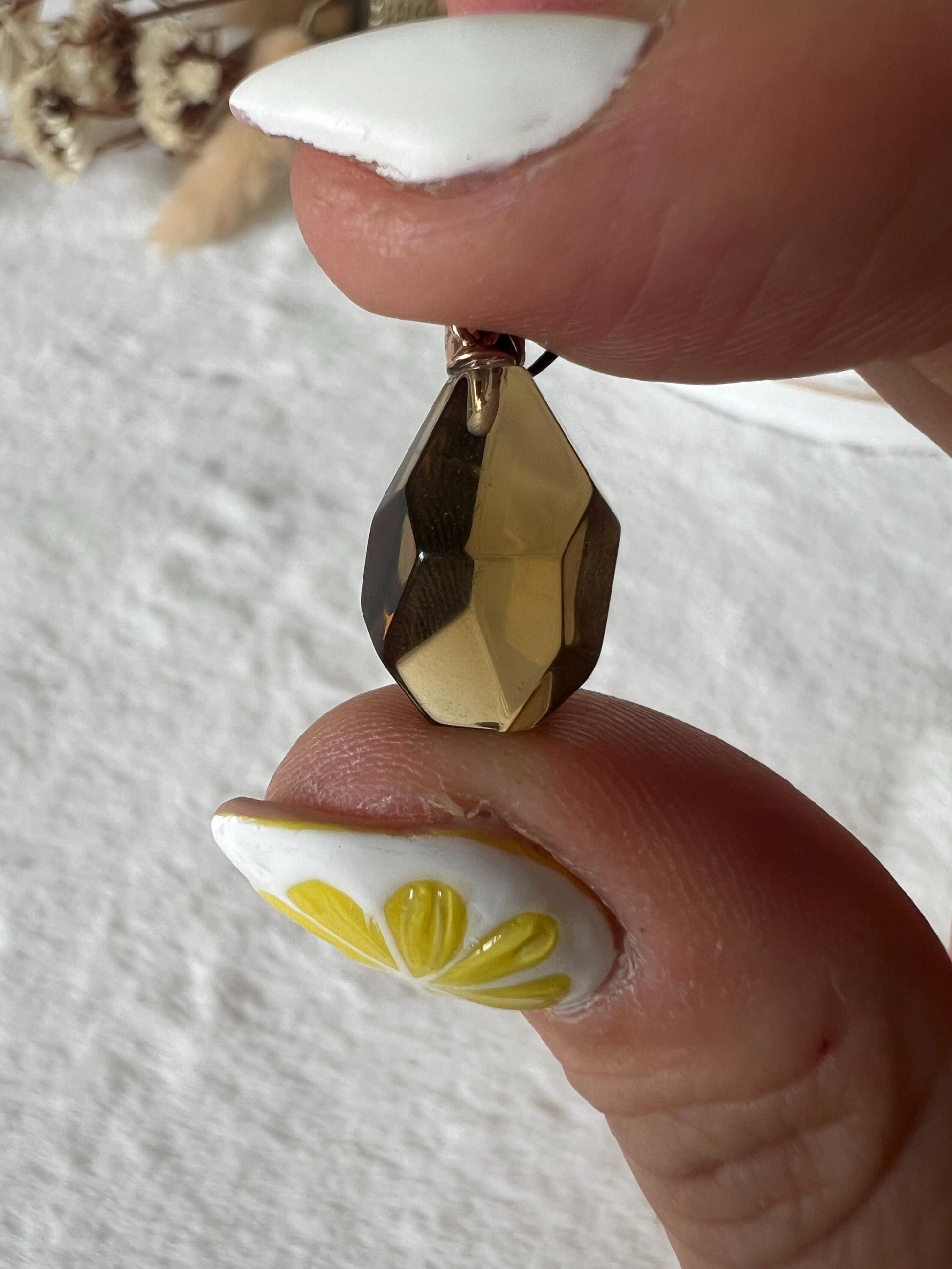 Whisky Citrin Kettenanhänger – facettierte Freiform in Roségold