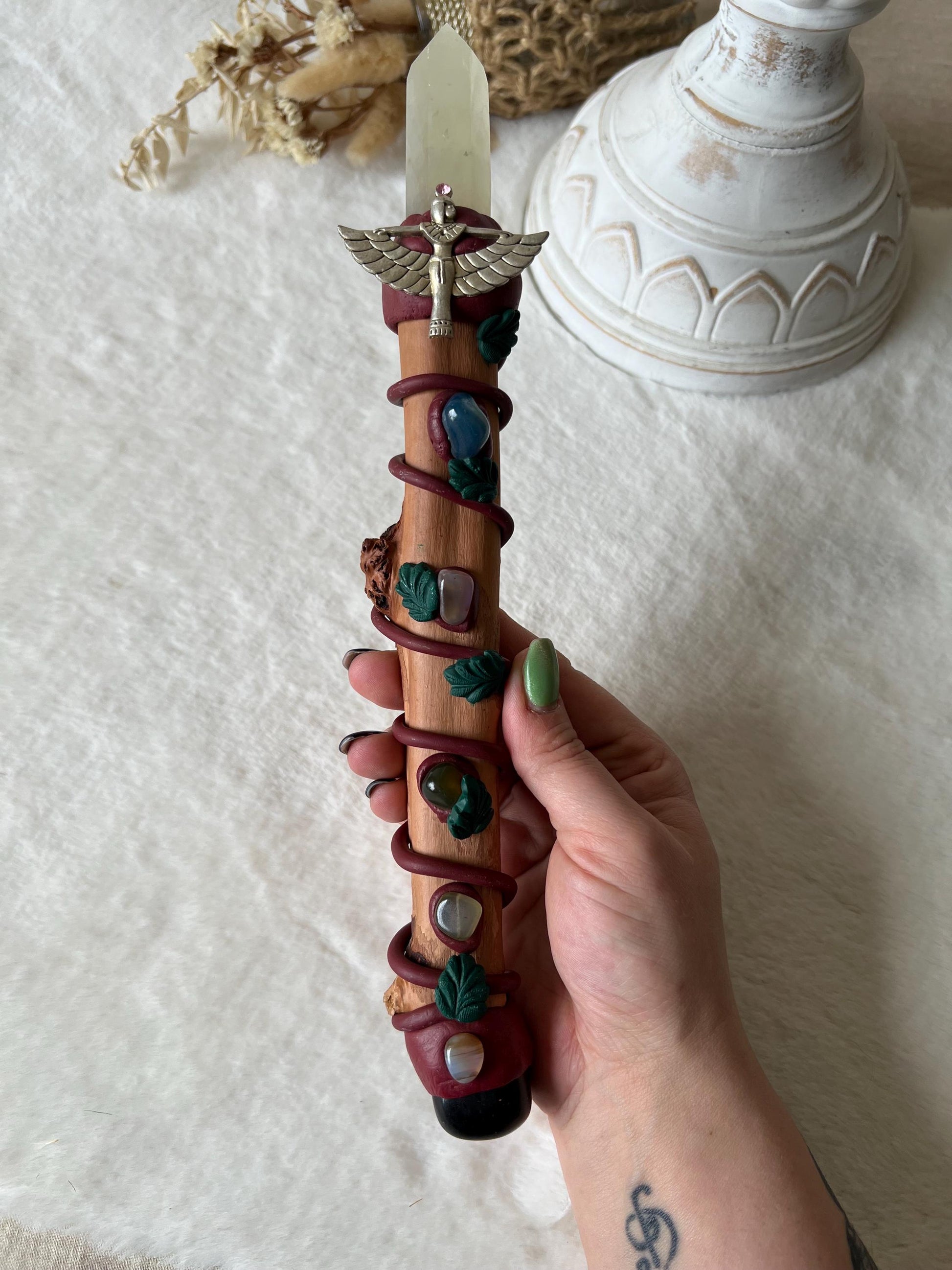 Jeder Zauberstab ist ein Unikat und wird mit Liebe gefertigt - perfekt für moderne Hexen, spirituelle Seelen oder als besonderes Geschenk.
