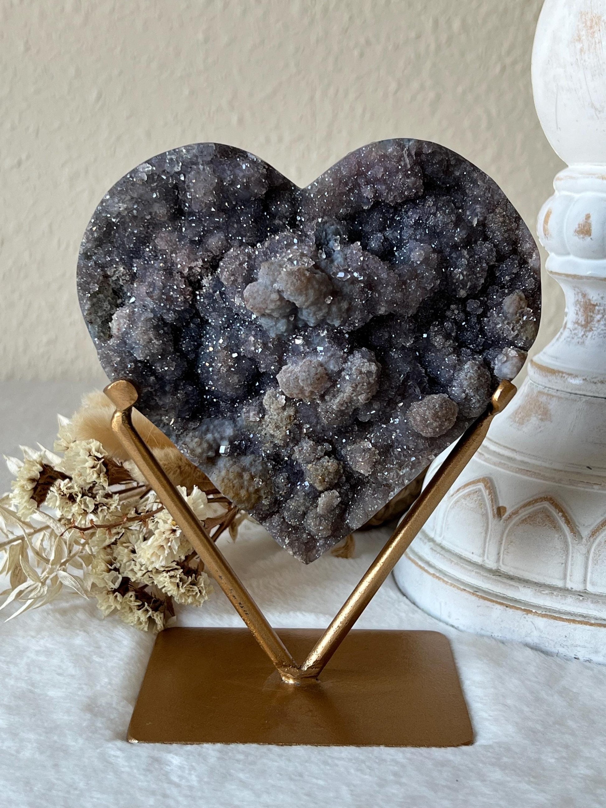 Zeolith-Calcit-Herzen auf goldenem Halter